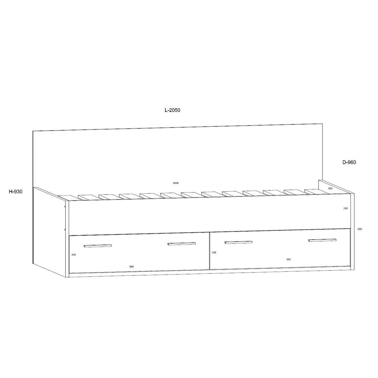 HEY _10 baldų lova be čiužinio