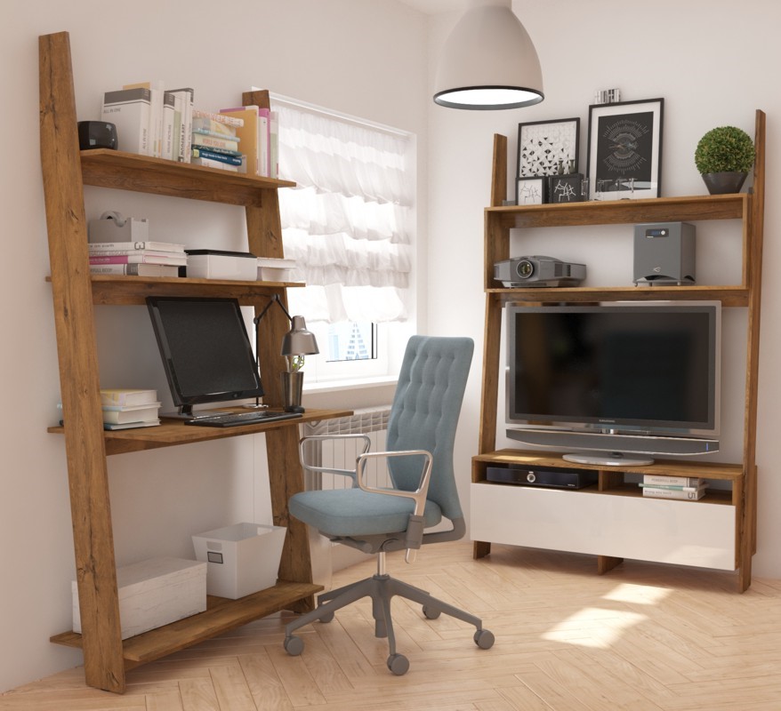 The set includes: KERK 09 TV stand [120/196/39] KERK 01 desk [100/196/50]