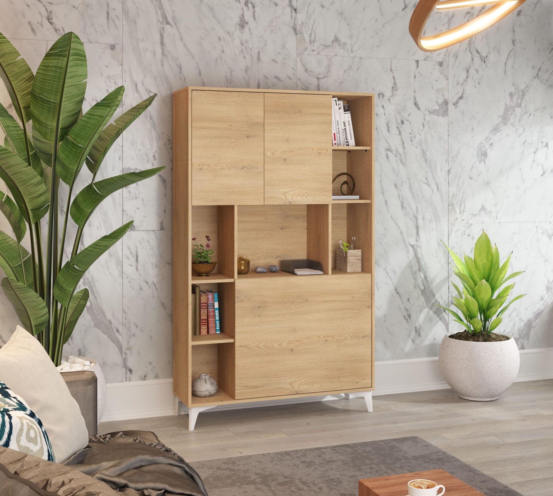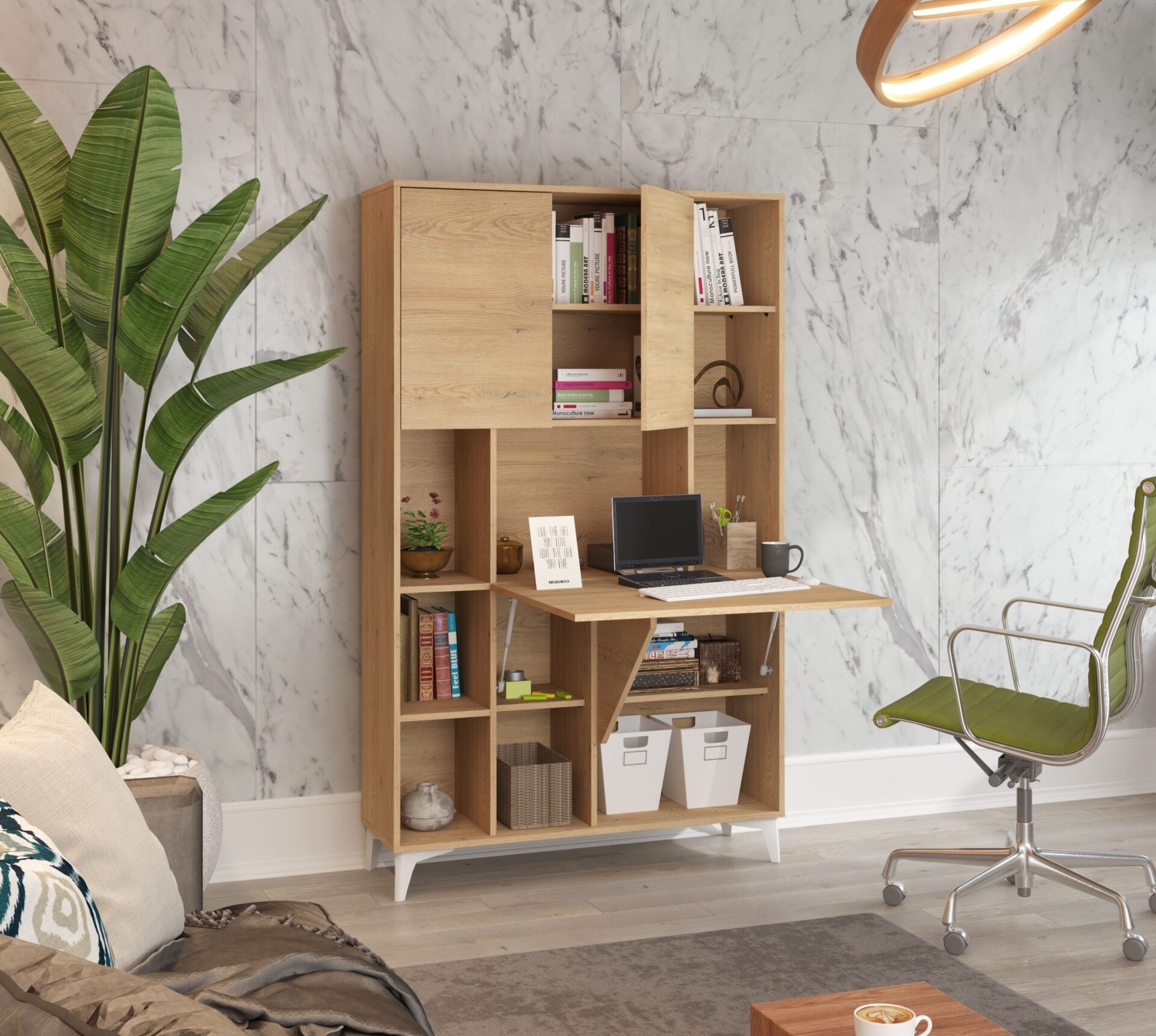 Be the first to review “MEGI 2 baldų knygų lentyna + sulankstomas stalas, kremonos ąžuolas”