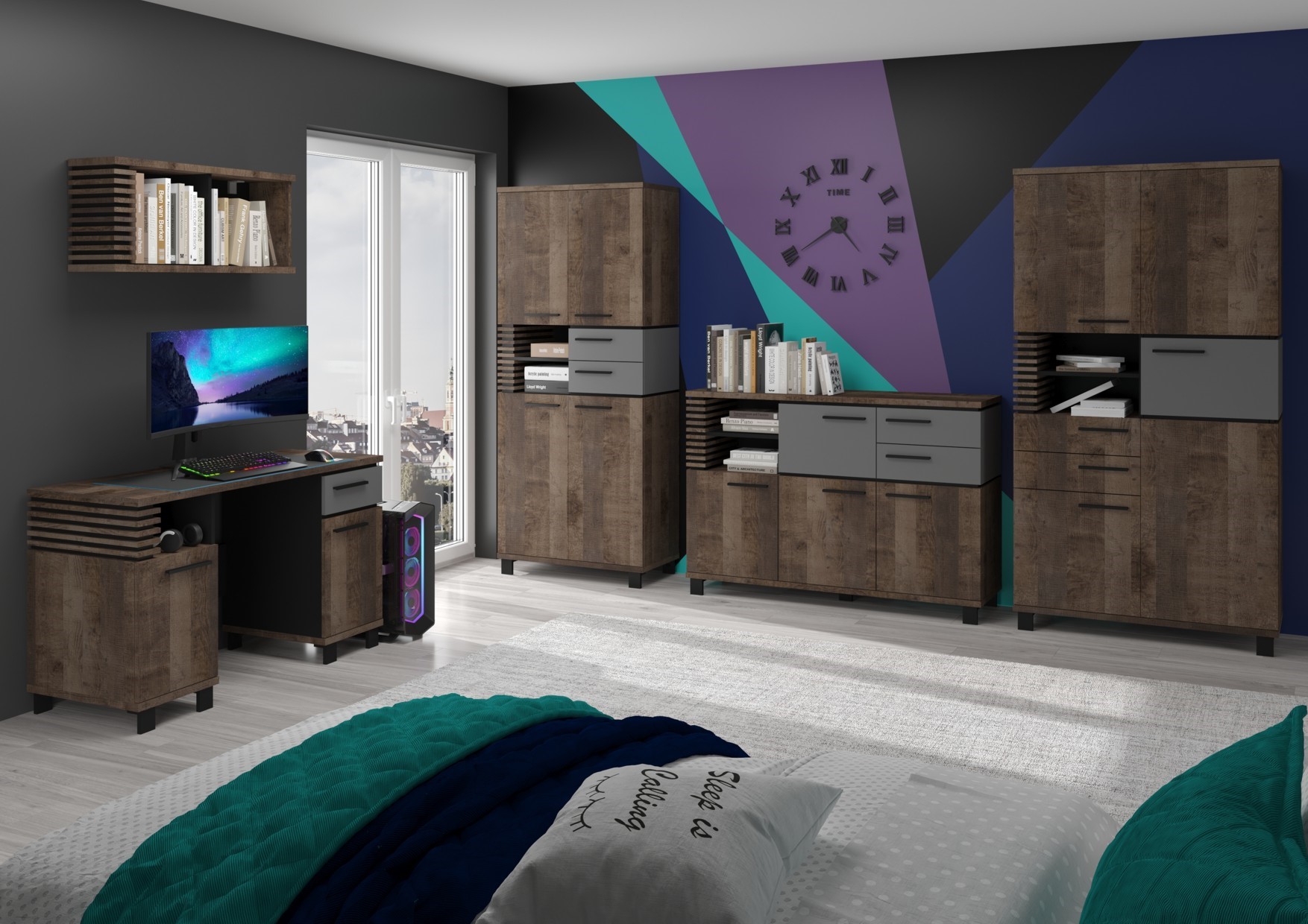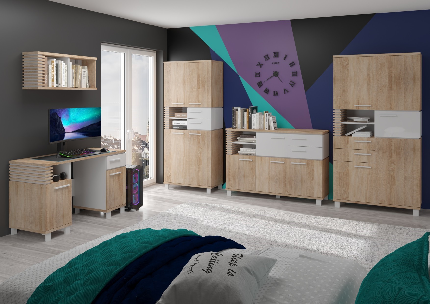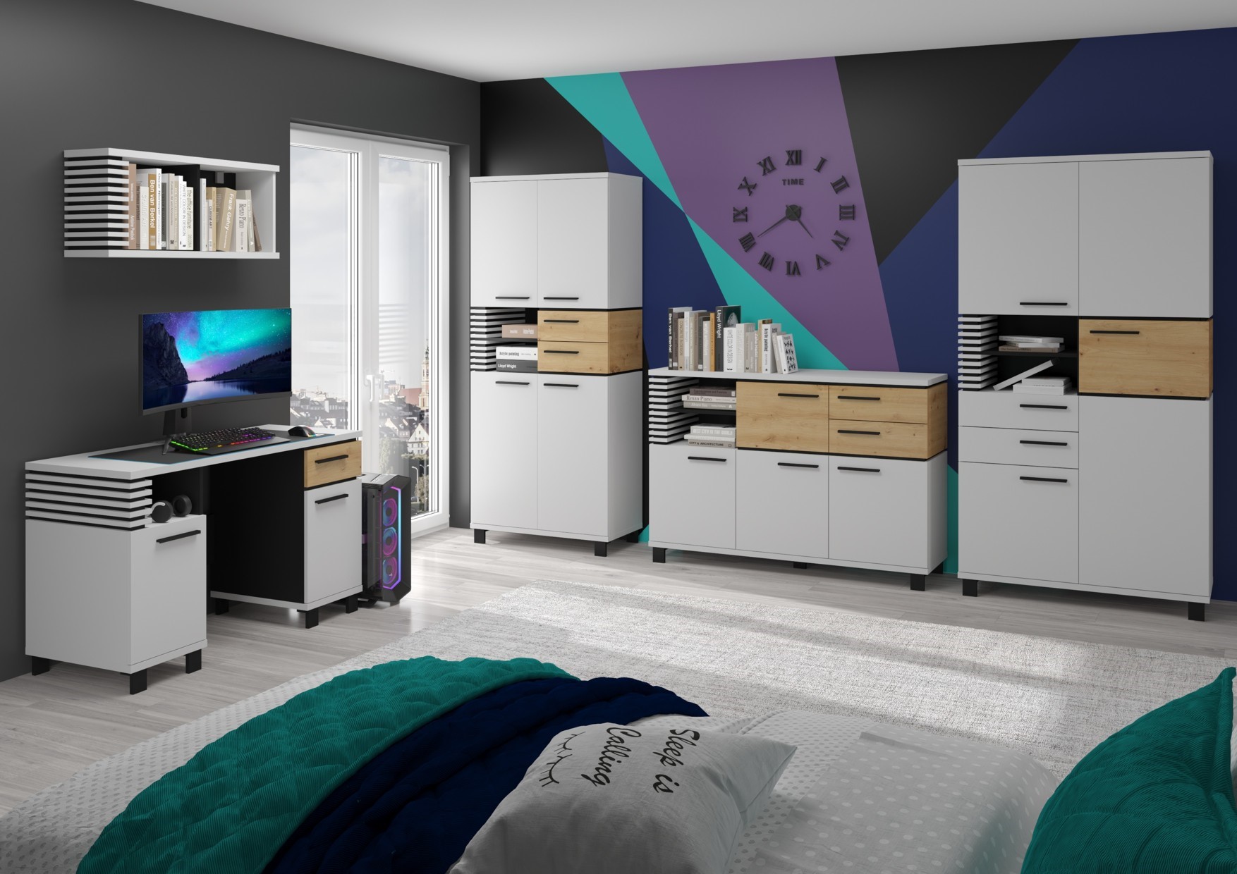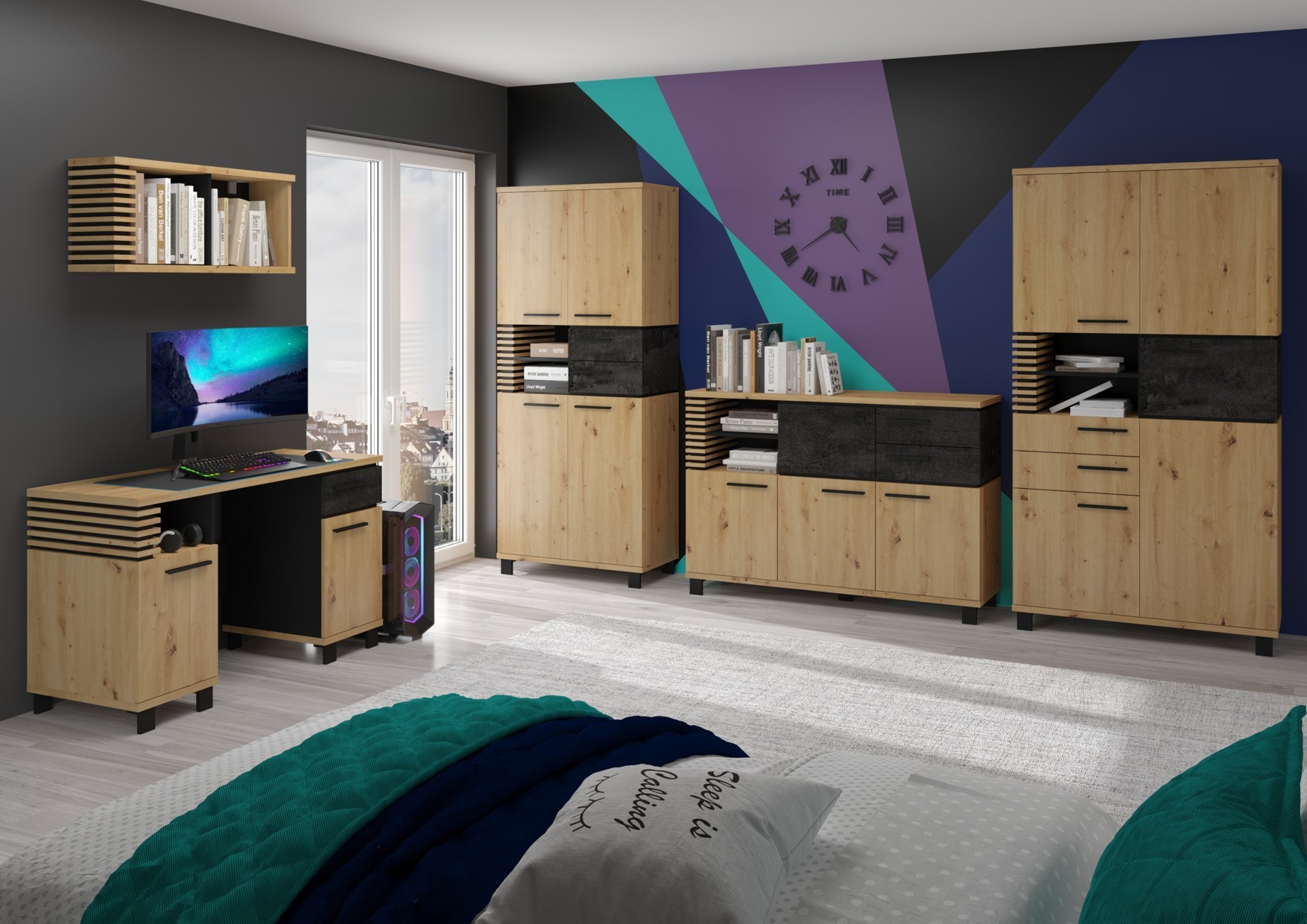 Available colors: White / Artisan Oak / Black, Endgrain Oak / Concrete Gray / Black, Light Sonoma Oak / Gloss White / White, Stone Oak / Gloss Black / Black, Artisan Oak / Concrete Black / Black, Grange Oak / Graphite / Black