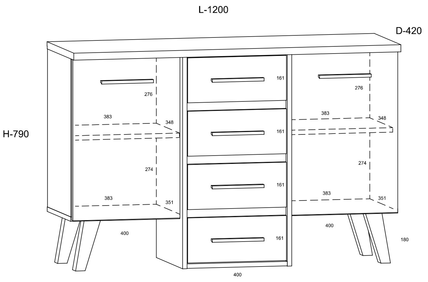 The furniture is constructed of 16mm and 25mm thick chipboard with ABS edging. The drawers and doors feature a soft-close mechanism. Wooden legs are 18cm high.