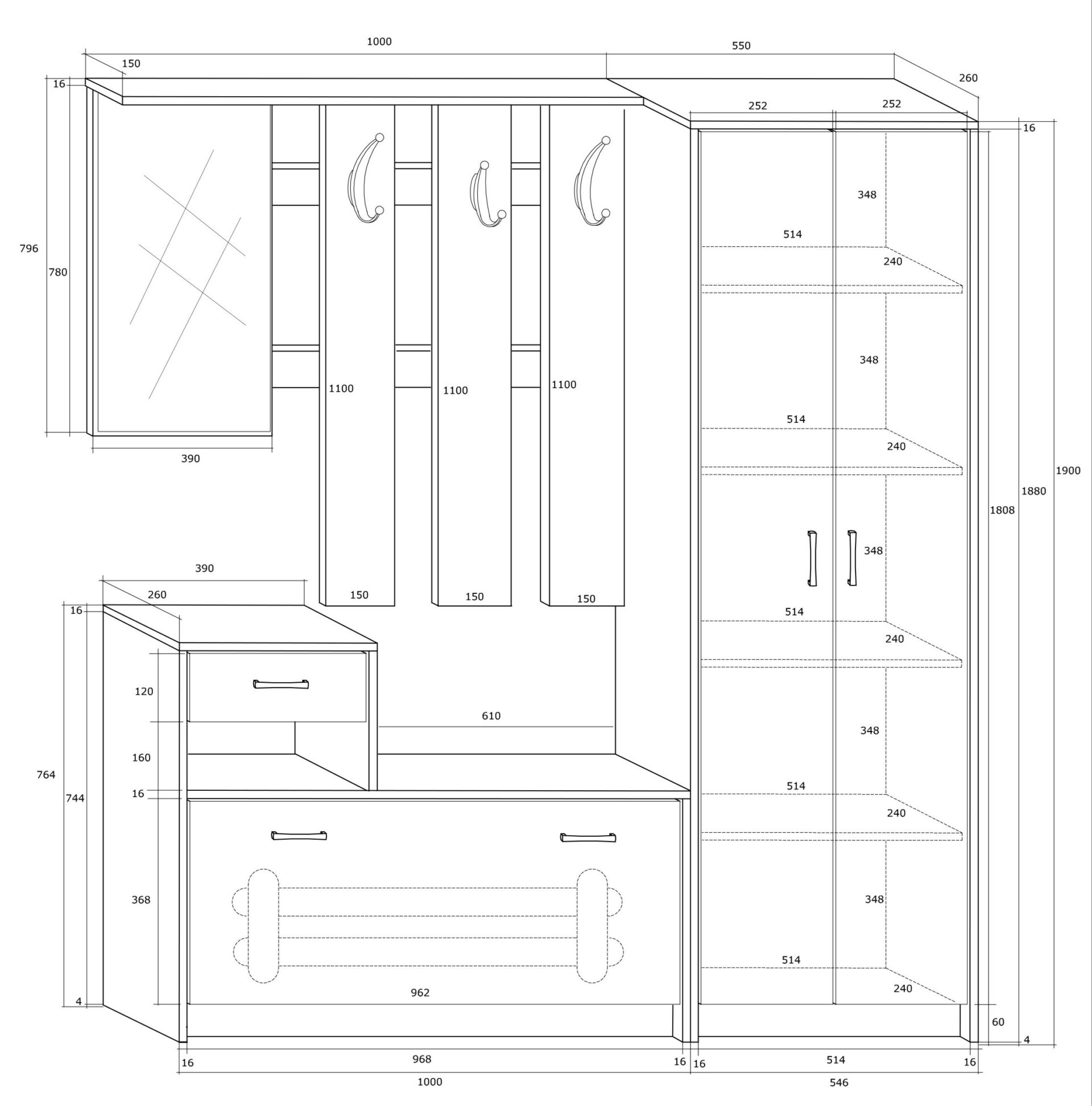 Width [cm]: 155 Height [cm]: 190 Depth [cm]: 28