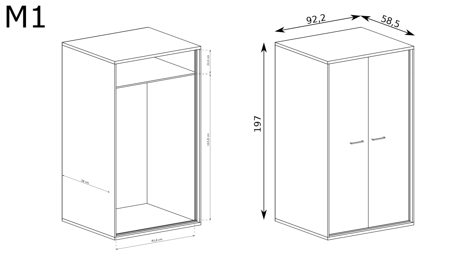 Give your interior a touch of industrial style with the MEDIOLAN-1 2-door wardrobe from Jarstol. Crafted in a stunning hickory color, this wardrobe is a perfect blend of functionality and aesthetics. Its warm, light shade contrasts harmoniously with black handles and decorative trim, giving your interior a modern and elegant look. This wardrobe is more than just a piece of furniture—it’s a perfect decorative element that will liven up any room. The MEDIOLAN-1 wardrobe was designed with everyday practicality in mind. Thanks to the 88.1 cm long rail system, you can conveniently store your clothes on hangers, making daily use of the wardrobe much easier. An additional shelf above the hangers gives you more space organization options, allowing you to place rarely used clothes or seasonal accessories at the bottom. This storage method promotes order and efficiency, allowing you to find everything you need in the blink of an eye. The intelligent design of the MEDIOLAN-1 wardrobe also surprises with its innovative solutions. Equipped with double doors with soft-close hinges, it provides convenient, noise-free access to the interior. An additional option is the ability to divide the space into two sections with a divider, giving you even more flexibility in organization. If you need space for long dresses or jackets, you can adjust the rod to a length of 42.8 cm, and if necessary, add shelves to accommodate all your wardrobe items to your liking.