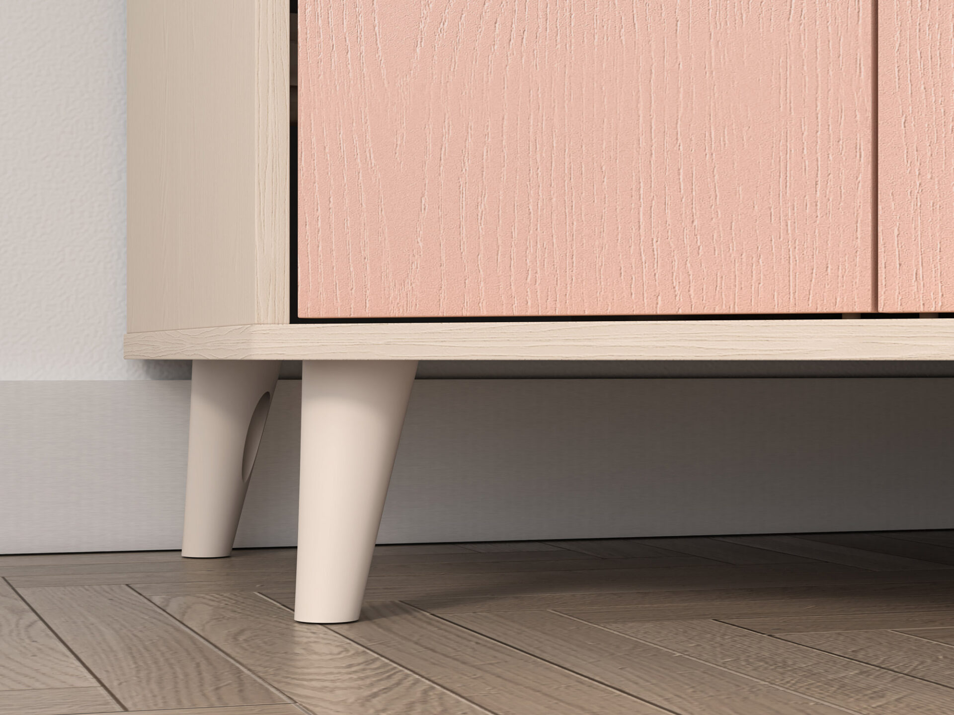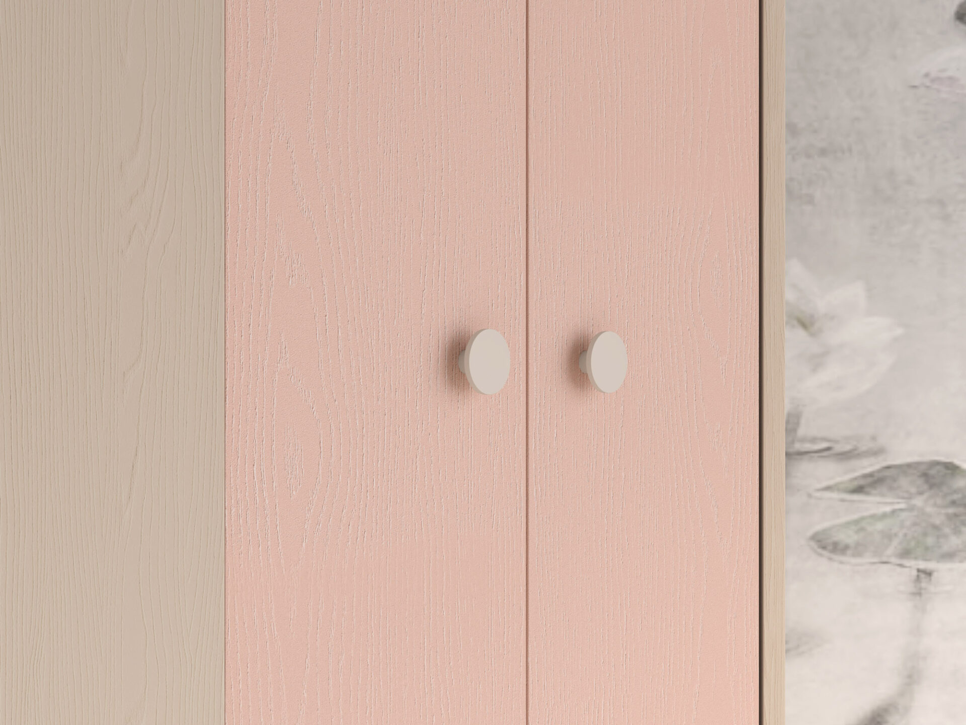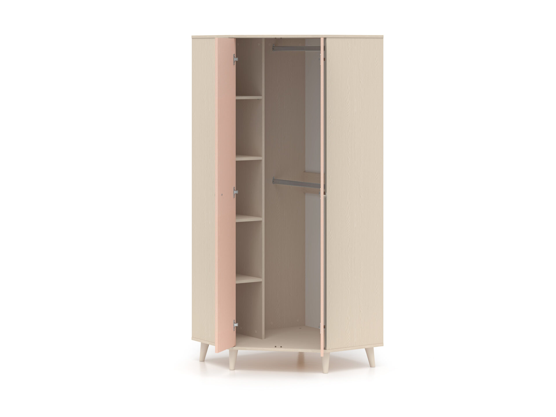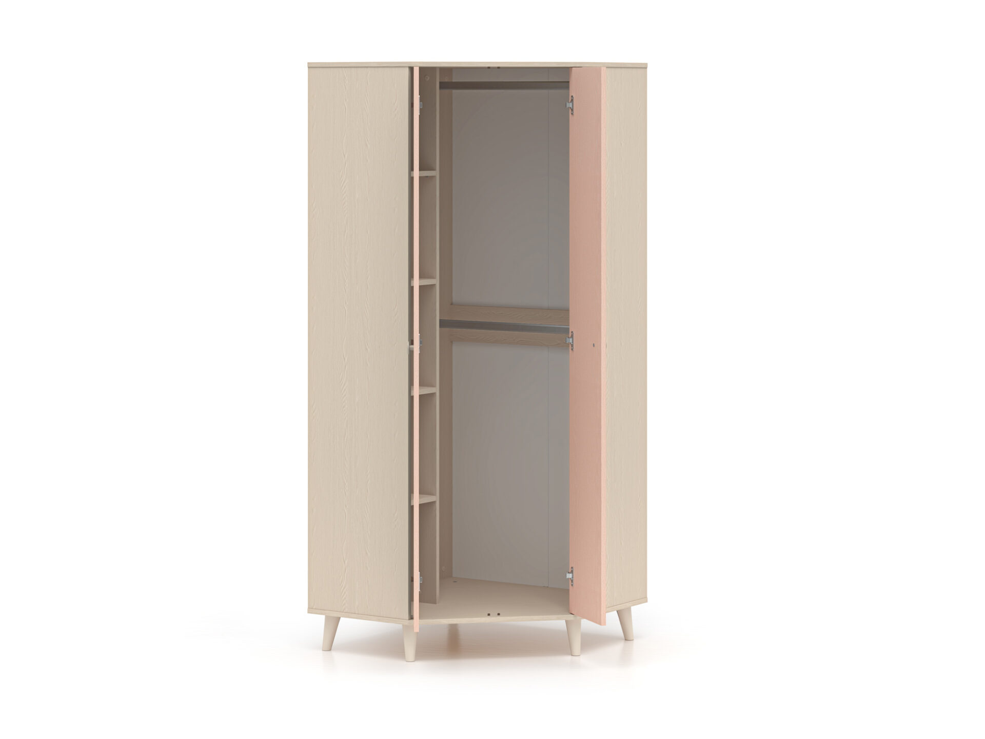 The Mevel 01 two-door corner wardrobe provides ample storage space. The spacious space is equipped with two convenient hanging rails at different heights and five spacious niches, allowing for comfortable storage of a large number of clothes. The wardrobe will perfectly fill the corner of your child’s room, maximizing the use of even the smallest space.