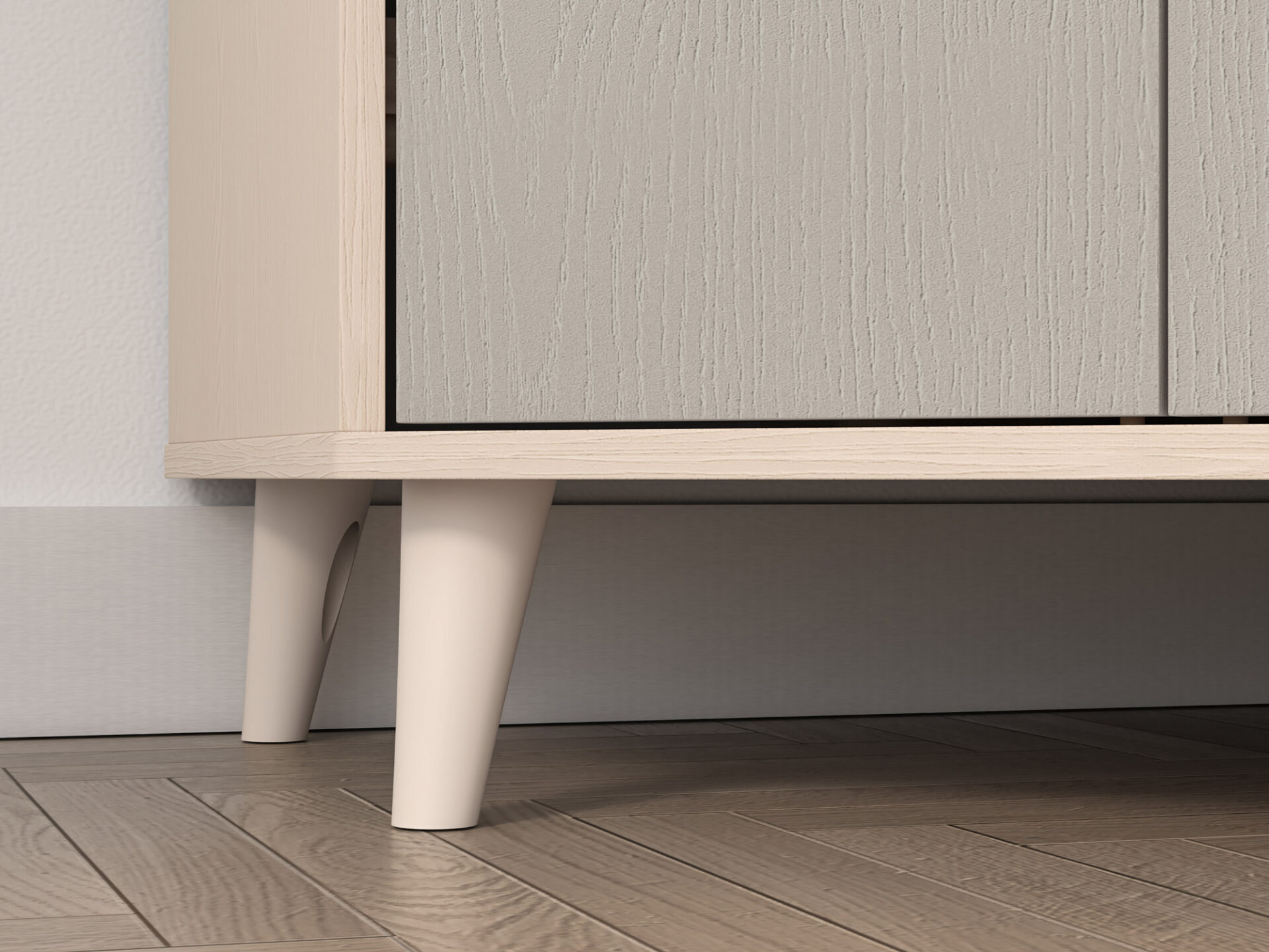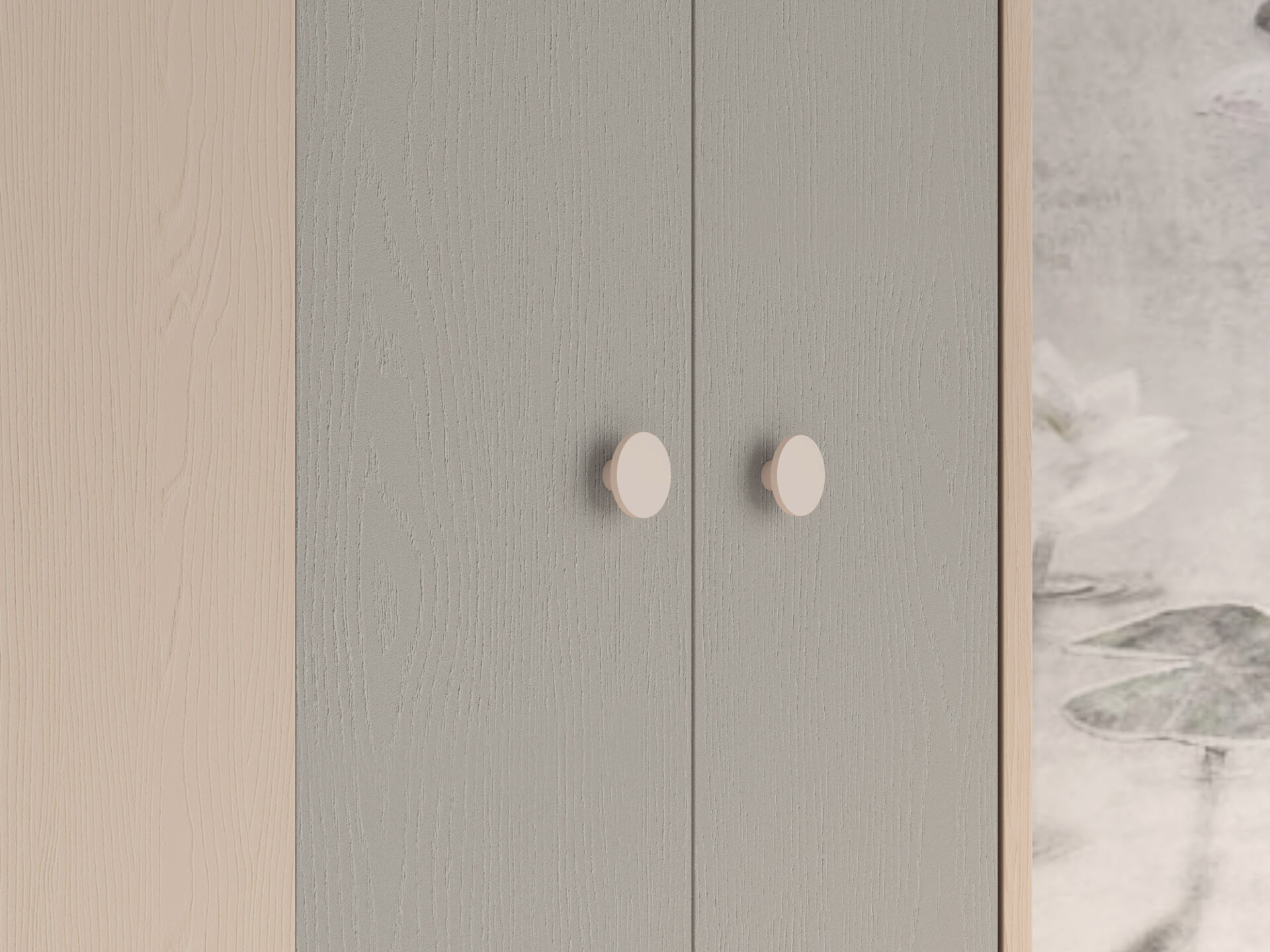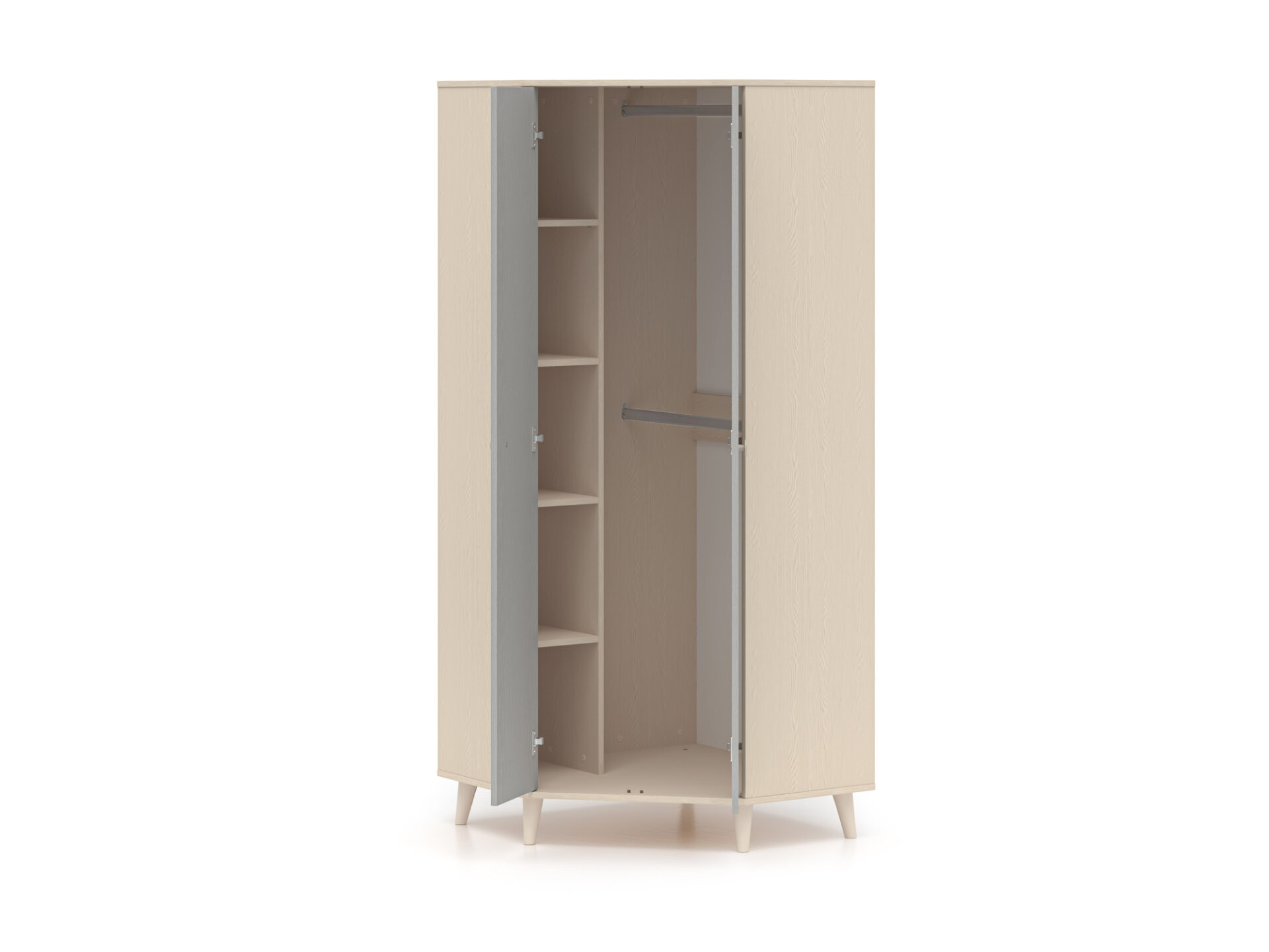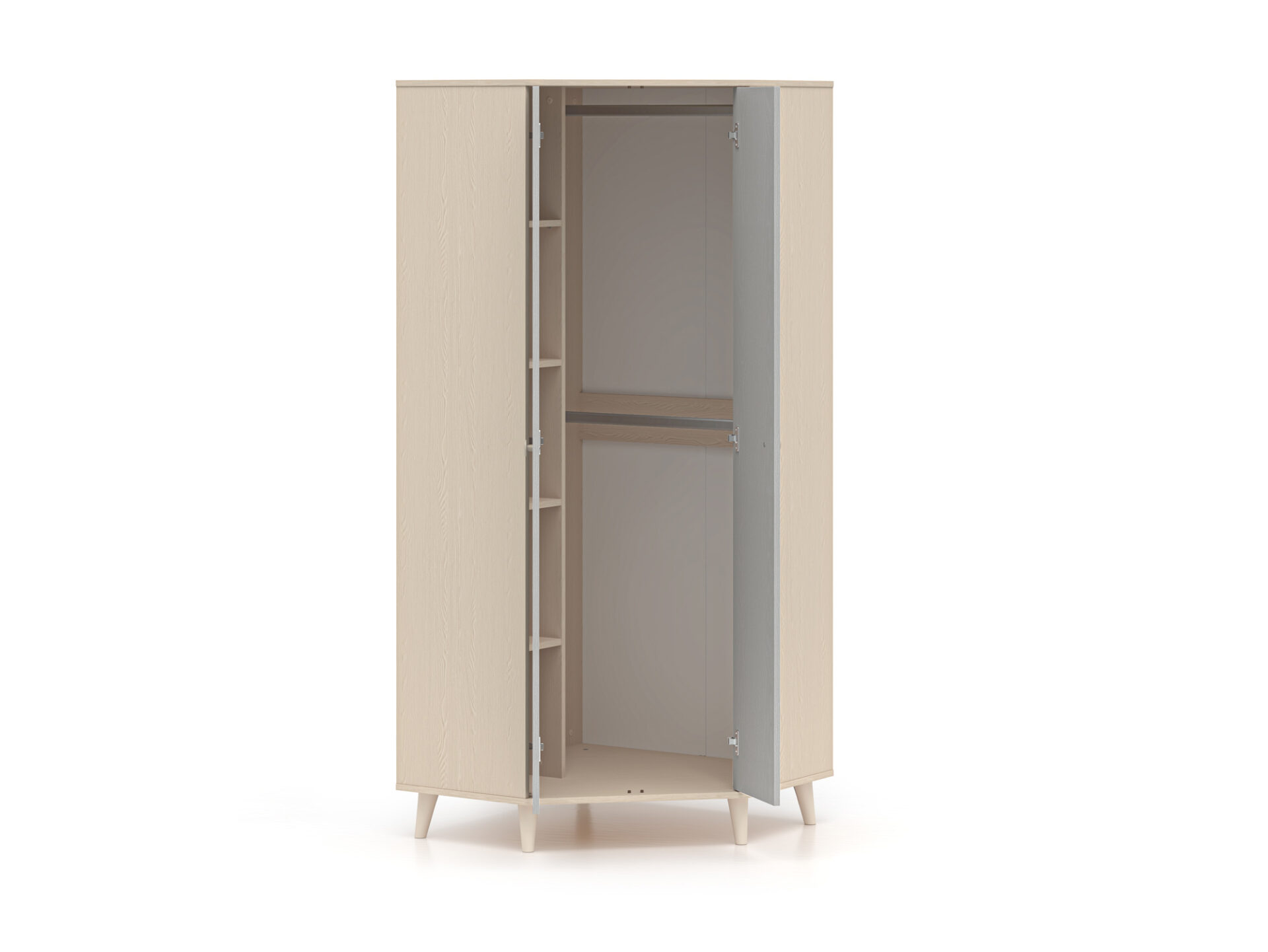 The Mevel 01 two-door corner wardrobe provides ample storage space. The spacious space is equipped with two convenient hanging rails at different heights and five spacious niches, allowing for comfortable storage of a large number of clothes. The wardrobe will perfectly fill the corner of your child’s room, maximizing the use of even the smallest space.