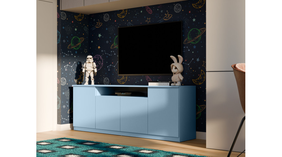 Moderni komoda su „TipOn“ sistema, 200 × 44 cm, kreidos mėlyna – Luna
