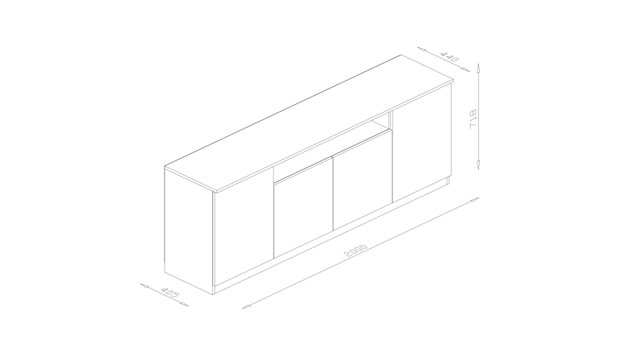 The Luna chest of drawers, measuring 200 x 44 cm, is a modern piece of furniture designed for functional storage combined with a distinct yet uncluttered form. Its simple shape and handleless fronts make it a perfect addition to modern living room, bedroom, or youth room designs, serving both functional and decorative purposes.