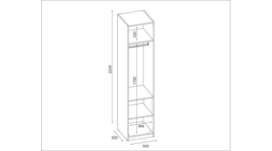 Modulinė spinta 50×225 cm su pakabinimo bėgeliu ir lentynomis – MAX Premium “D”