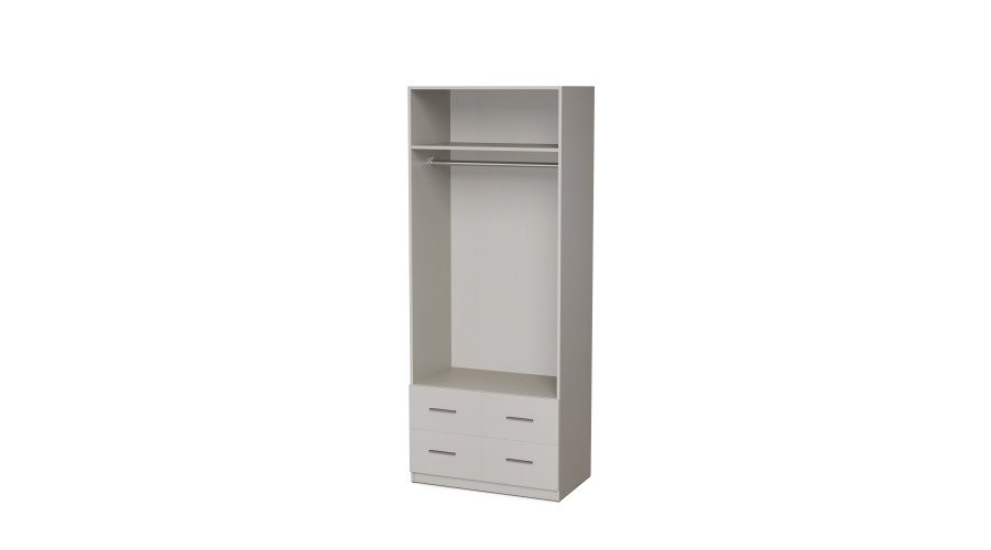 “MAX” Modular Wardrobe System Module – Wardrobe 90 “K” This 90×225 cm modular wardrobe with a hanging rail, drawers, and shelves is a functional piece of furniture from the MAX Premium System series, designed for discerning users seeking maximum capacity and everyday comfort. The combination of three different types of hanging space, shelves, and drawers, makes this wardrobe the perfect centerpiece for a wardrobe, bedroom, or hallway. The rod provides convenient storage for clothes that need to be hung, such as coats, jackets, dresses, or shirts. Next to it are practical shelves, where you can easily arrange sweaters, pants, or accessories. The spacious drawers, ideal for storing underwear, seasonal accessories, belts, or scarves, complete the look. This interior layout allows for convenient wardrobe organization and ensures everything has its place. All components are made to the premium standard, meaning that the drawers have full extension and a soft-close mechanism, the hinges also operate silently, and the metal handles are available in three color options: black, aluminum, and gold. The furniture can be finished in any color from the palette available, allowing you to match its appearance to the style of any interior. One of the greatest advantages of the MAX system is its modularity. The wardrobe can be freely combined with other segments, creating a system tailored to the user’s individual needs. This system gives you complete control over the organization of the space, which you can expand and change as your needs change. Whether you’re planning a compact wardrobe or a comprehensive wall installation, it’s easy to customize.