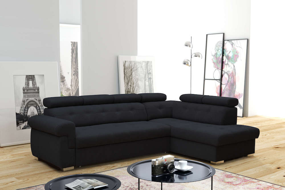 One of our customers’ most frequently chosen corner sofas. It’s a dream piece for lovers of modern style. This corner sofa combines many advantages. Thanks to its built-in storage, it’s perfect for those who need extra storage space. During the day, it’s perfect for relaxing, and at night, it provides a comfortable bed for two adults. Adjustable headrests are an additional advantage. Specifications: – Zigzag springs – Sleeping function – High-resilience foam – Storage – Stitching – Adjustable headrests – Metal legs * Custom-made furniture – order lead time 3 to 5 weeks, **Dimension tolerance +/- 10cm