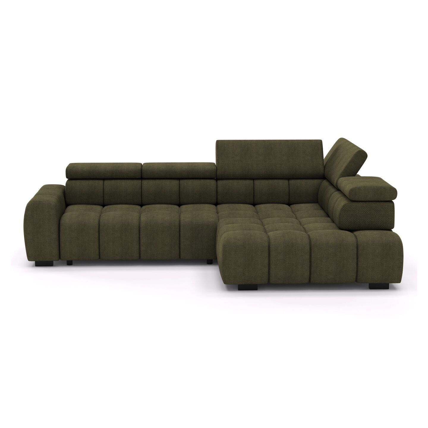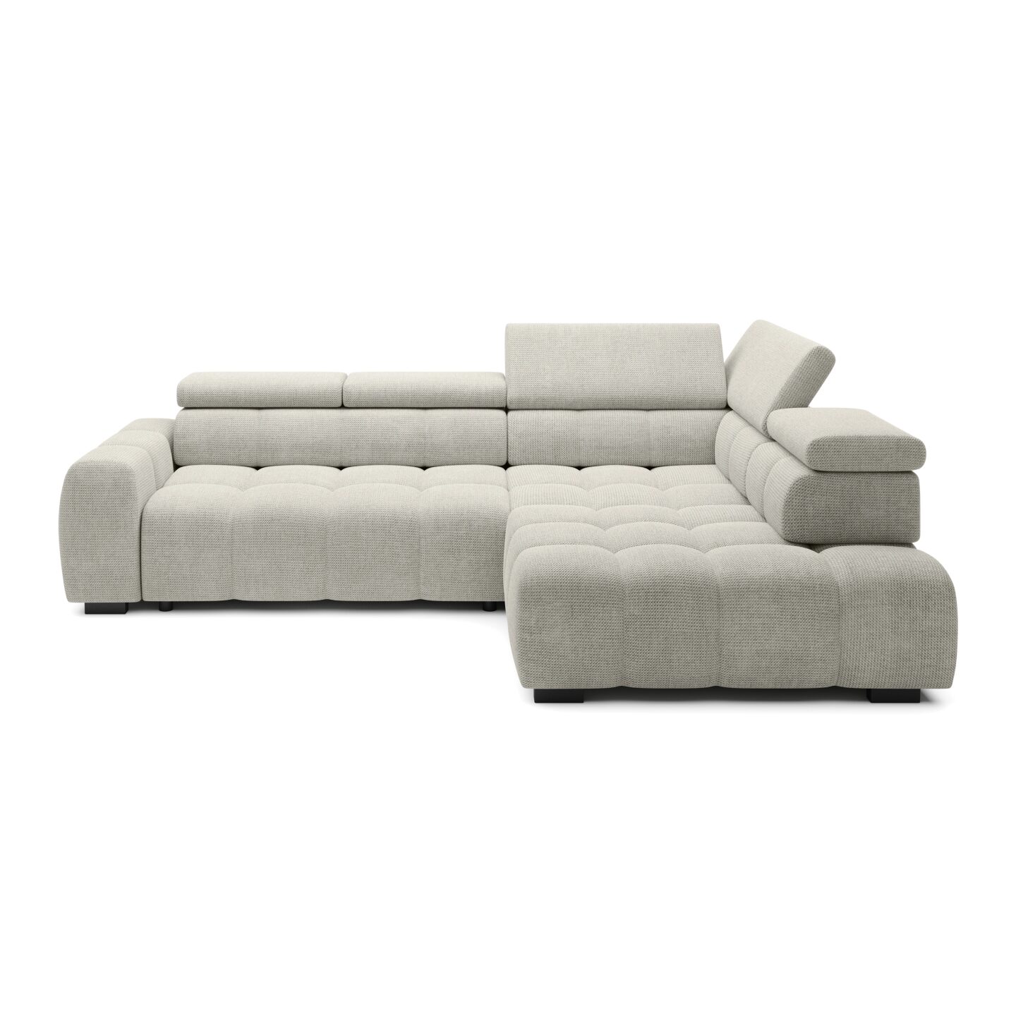 The Bull L corner sofa is a modern and functional piece of living room furniture, distinguished by its massive, geometric form and striking quilting throughout the seat. Equipped with adjustable headrests and wide armrests, it provides the ultimate in comfort. Its solid construction, sinuous springs, and high-quality foam guarantee durability and comfort for years to come. Perfect for those who value design, comfort, and spaciousness.
