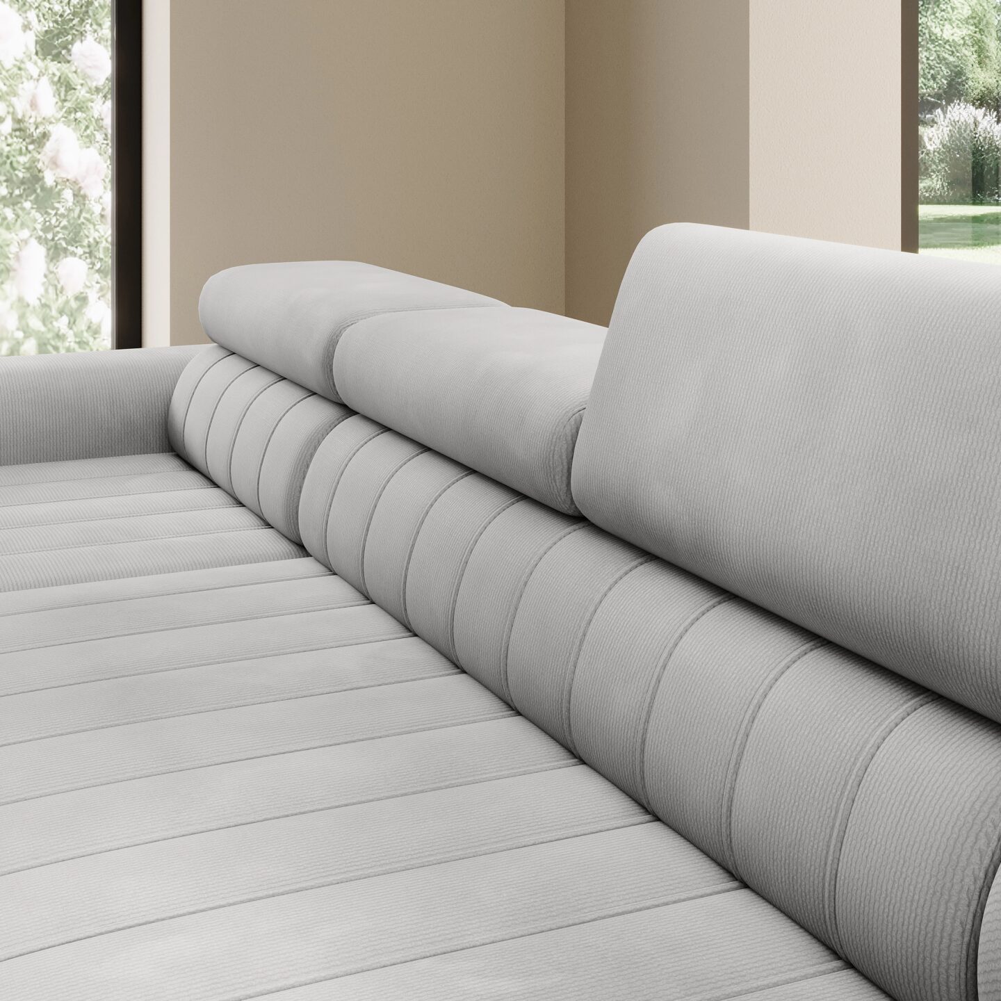 The Caldo XL corner sofa is a modern piece of furniture with a sleeping function and bedding storage that combines elegance and practicality. Equipped with the Puma reclining system, adjustable headrests, and high-quality wave springs and foam, it ensures everyday comfort and long-lasting durability. Thanks to its aesthetically finished back, it can be placed anywhere in the living room, and its impressive width of 342 cm makes it the perfect relaxation center for the entire family.