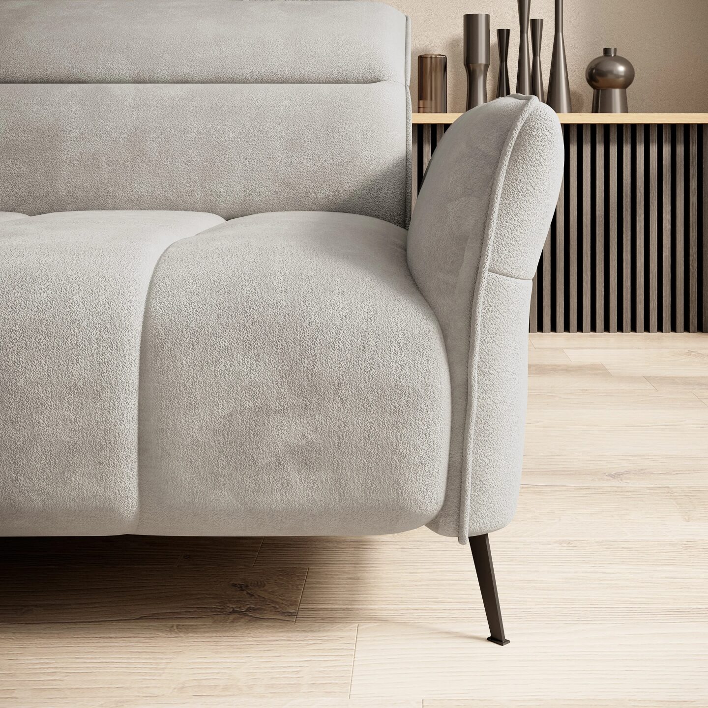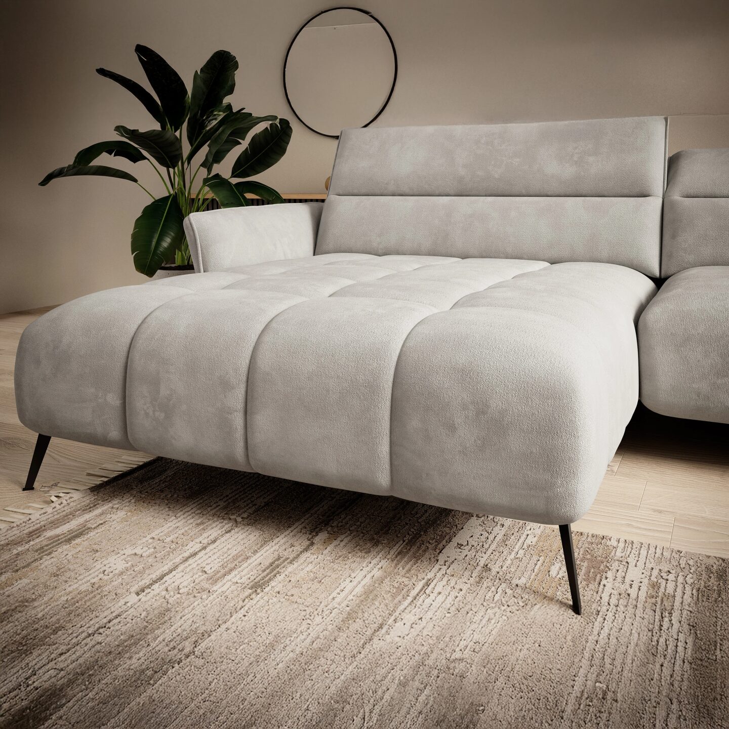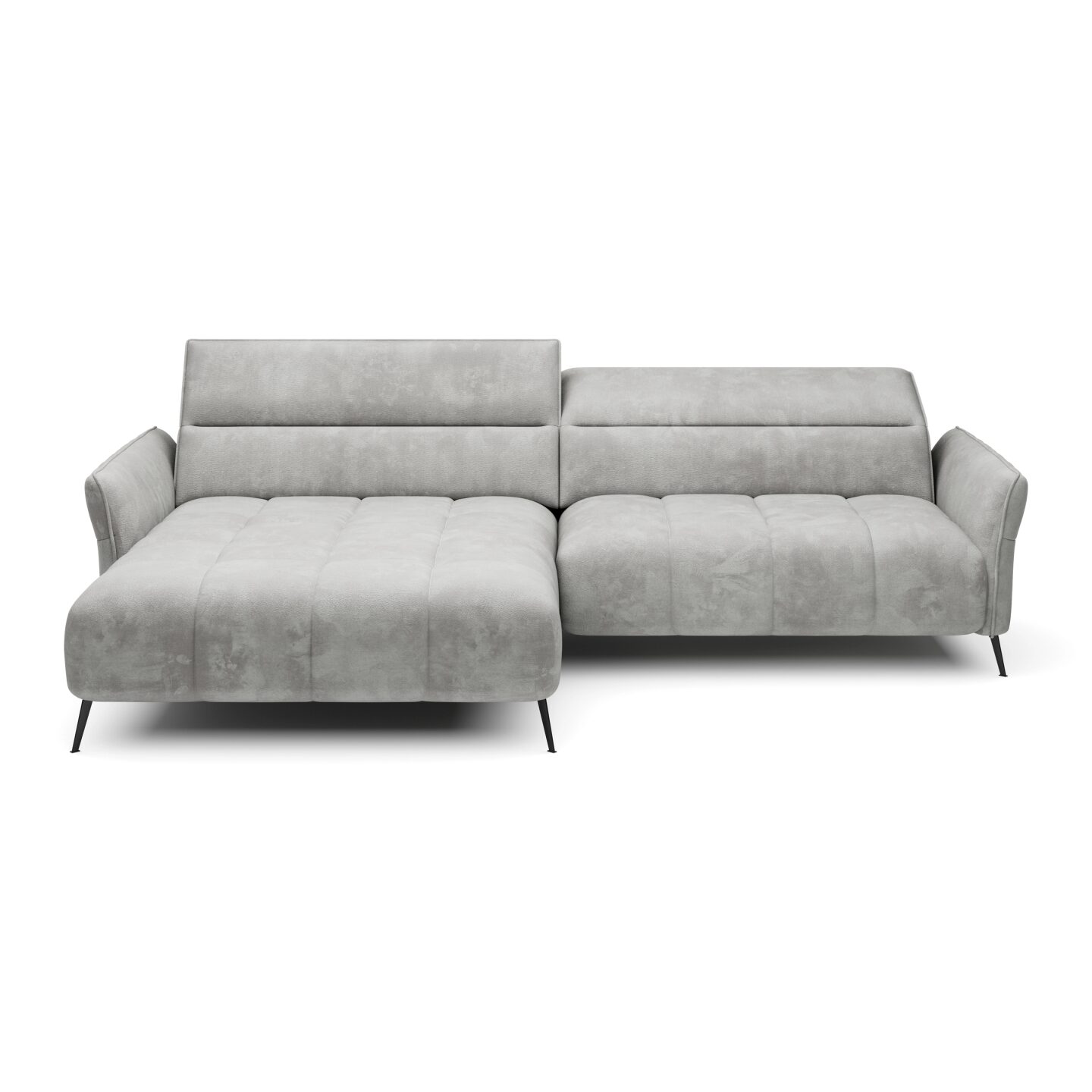 The Cavani corner sofa is a modern piece of furniture that combines elegance, functionality, and everyday comfort. Equipped with adjustable headrests, an electrically operated seat, and a sinuous A-spring system, it ensures maximum comfort and durability. Slender metal legs add a touch of lightness and elegance, while the freestanding structure makes it look stunning from every angle.