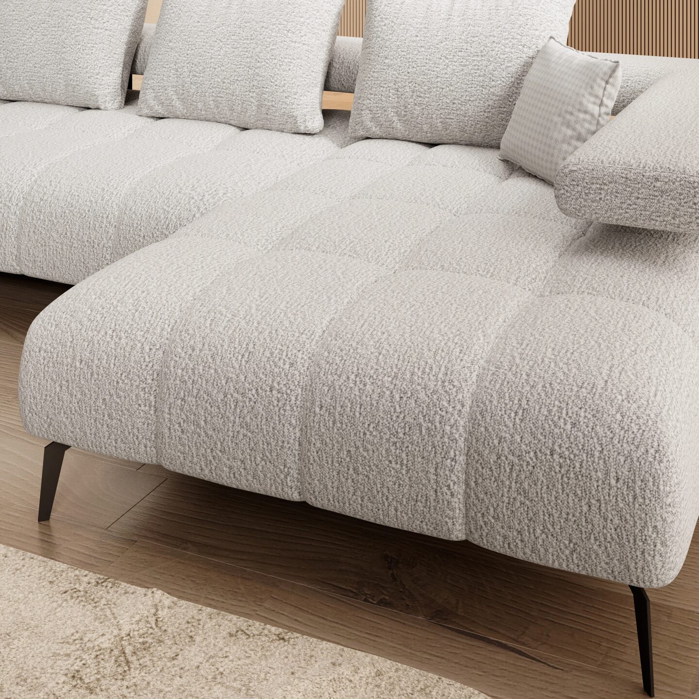 The Magnetic XL corner sofa is a unique blend of elegance, space, and functionality. Equipped with a power-operated seat and a sleeping surface of 109 x 305 cm, it offers maximum comfort for the entire family. Stylish metal details, an upholstered back, and high, black legs (17 cm) give it a modern, lightweight character. Thanks to its solid construction and the use of HR foam and sinuous springs, the Magnetic XL guarantees comfort and durability for years to come.