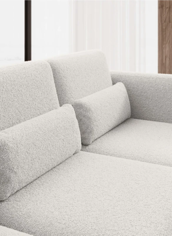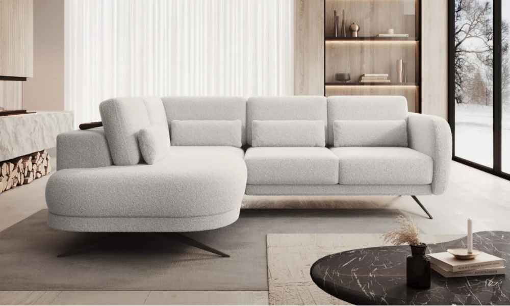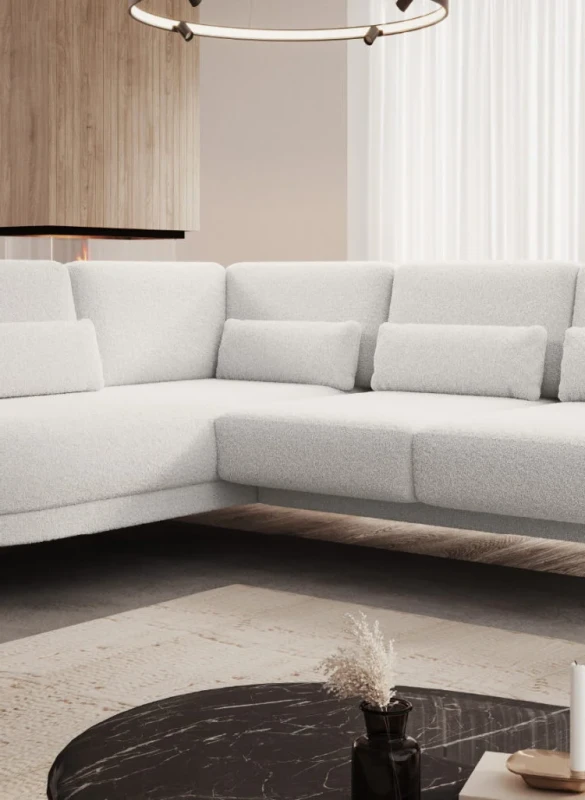 Thanks to its dimensions—248 cm wide, 205 cm deep, and 104 cm high—the Ilusio L corner sofa is perfect for medium-sized and larger living rooms, providing seating for three people. Its shape allows for efficient use of corner space, and the furniture’s harmonious lines complement modern and minimalist interiors. The lack of a bedding storage compartment or sleeping function means the corner sofa focuses on providing maximum comfort during daytime relaxation, and its presence in the living room promotes daily conversations, social gatherings, or quiet reading.