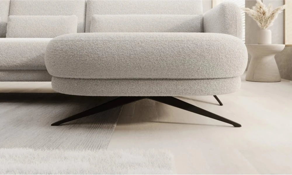 The Ilusio XL corner sofa stands out for its relaxation function, a mechanism that allows you to adjust the seat position to your preferences. This solution provides comfortable support for your legs and back, making relaxation after a long day of work even more enjoyable. The filling, made with a wave spring and polyurethane foam, guarantees not only softness and elasticity but also proper body support, ensuring durability and long-lasting shape retention. The entire piece rests on stable legs, which lend the piece a light feel and facilitate cleaning underneath.