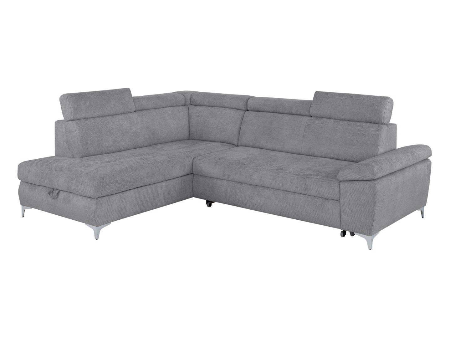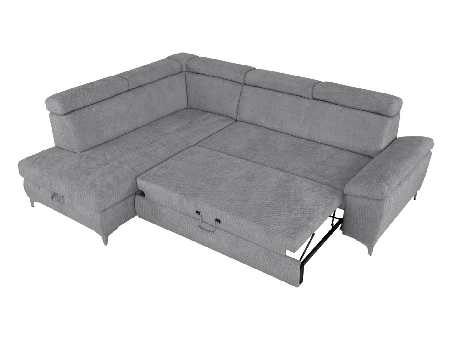 RAUL kairinė kampinė sofa, išskleidžiama, su daiktadėže, pilka