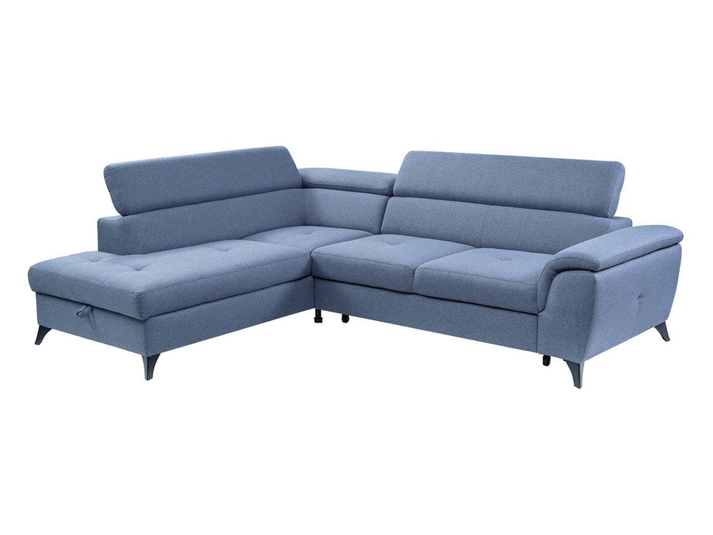 The dolphin-type reclining mechanism, supported by rubberized rollers, protects your floor from scratches. The additional relaxation space, measuring 126 x 183 cm, makes the Aldeia corner sofa an ideal place for guests. The mattress is made of upholstery fabric, which enhances the appearance of the living room when the sofa is unfolded.