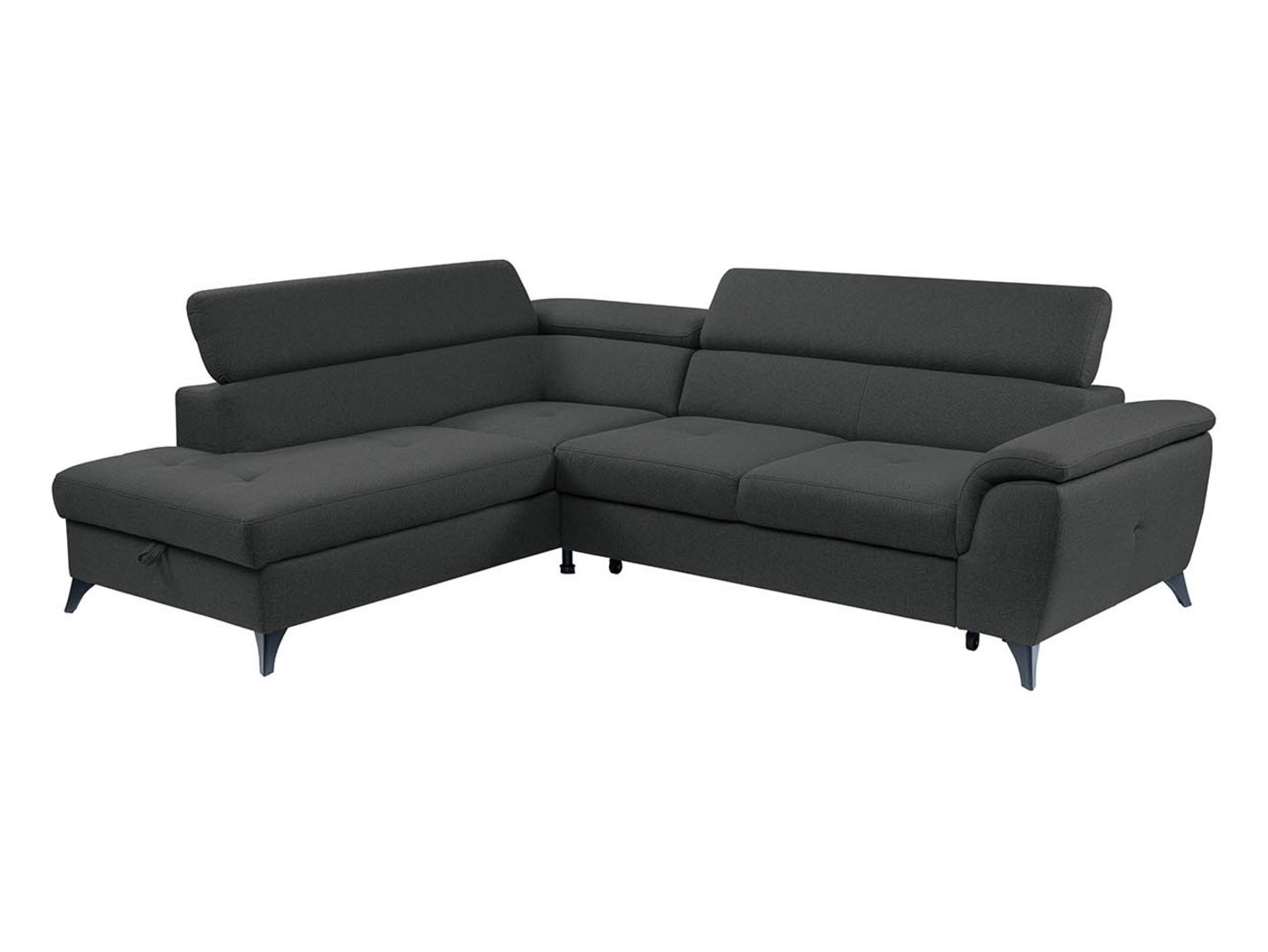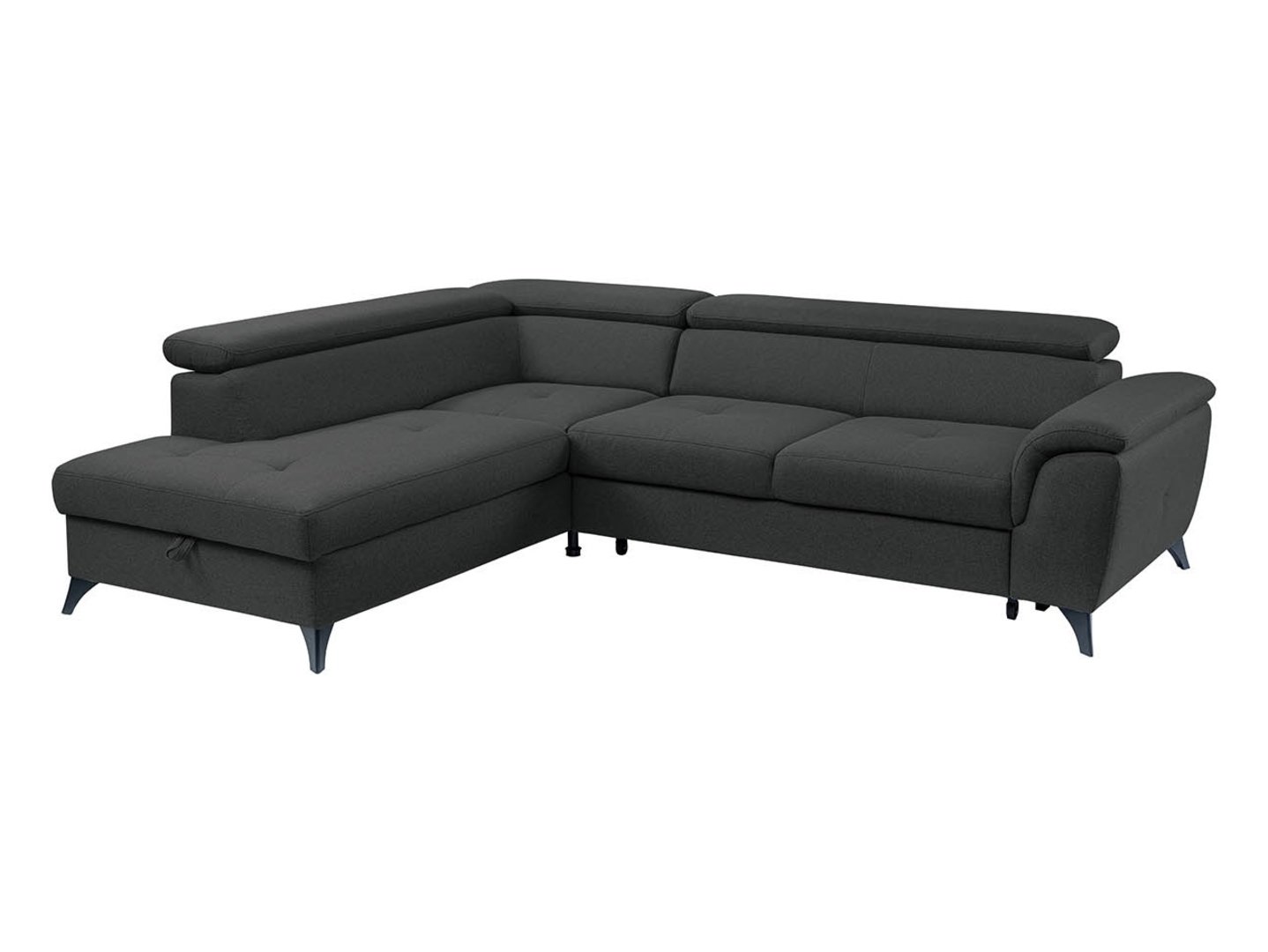 The dolphin-type reclining mechanism, supported by rubberized rollers, protects your floor from scratches. The additional relaxation space, measuring 126 x 183 cm, makes the Aldeia corner sofa an ideal place for guests. The mattress is made of upholstery fabric, which enhances the appearance of the living room when the sofa is unfolded.