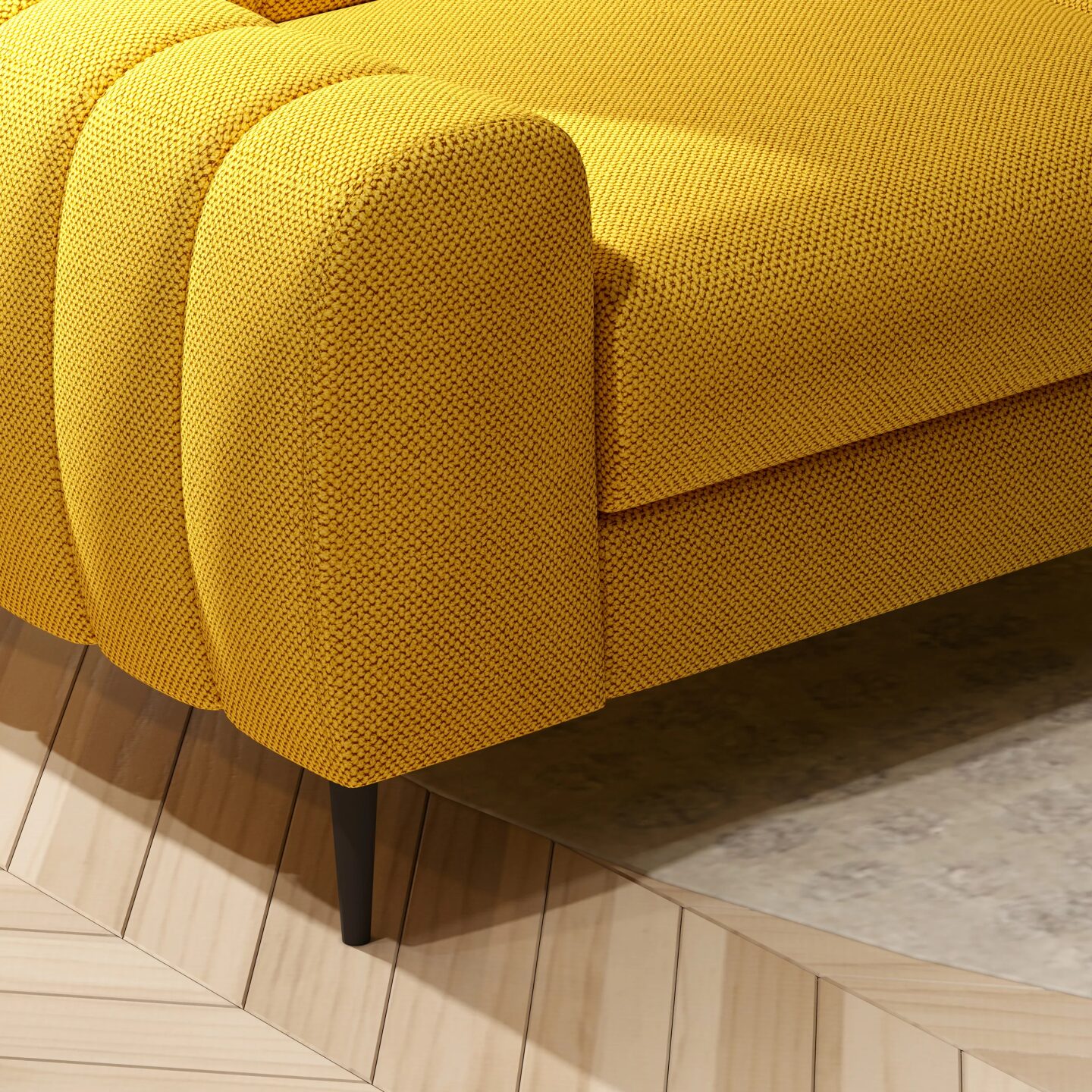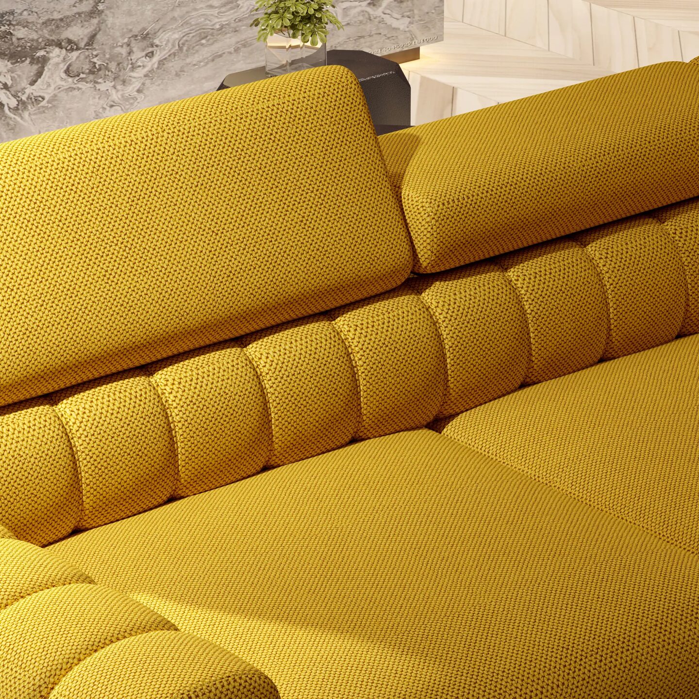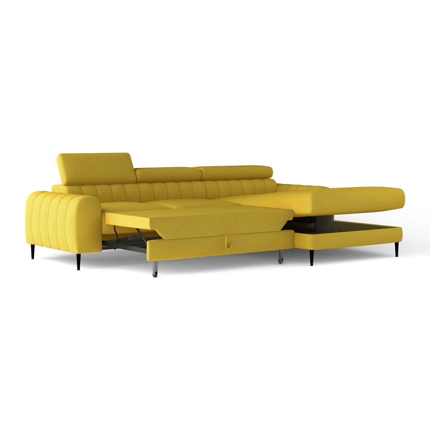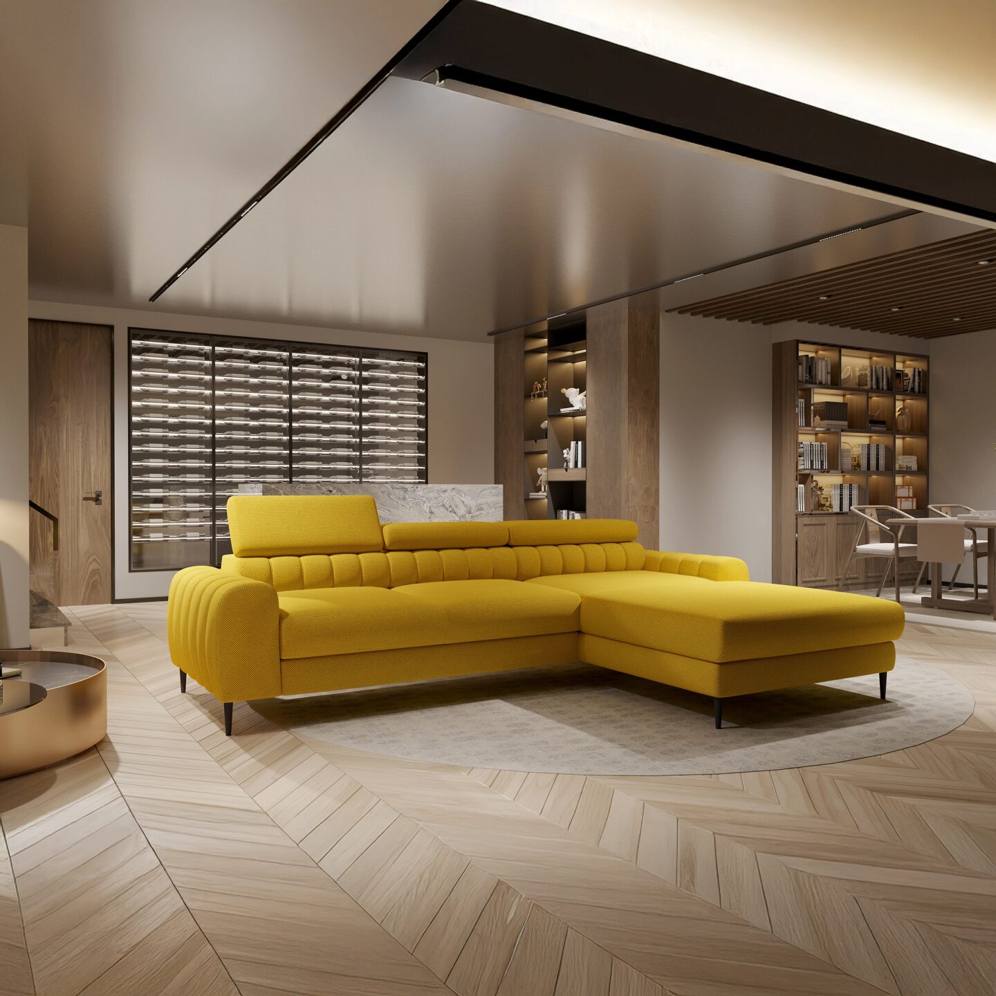 The Navas Mini corner sofa is an elegant and functional piece of furniture that combines modern design with maximum comfort. Equipped with a “Delphin” sleeping function, bedding storage, and three adjustable headrests, it’s a perfect addition to any living room. Its stable pinewood and MDF construction, combined with a type B sinuous spring and T-1818 foam, guarantees durability, while the 14 cm metal legs add a touch of lightness and modern style.
