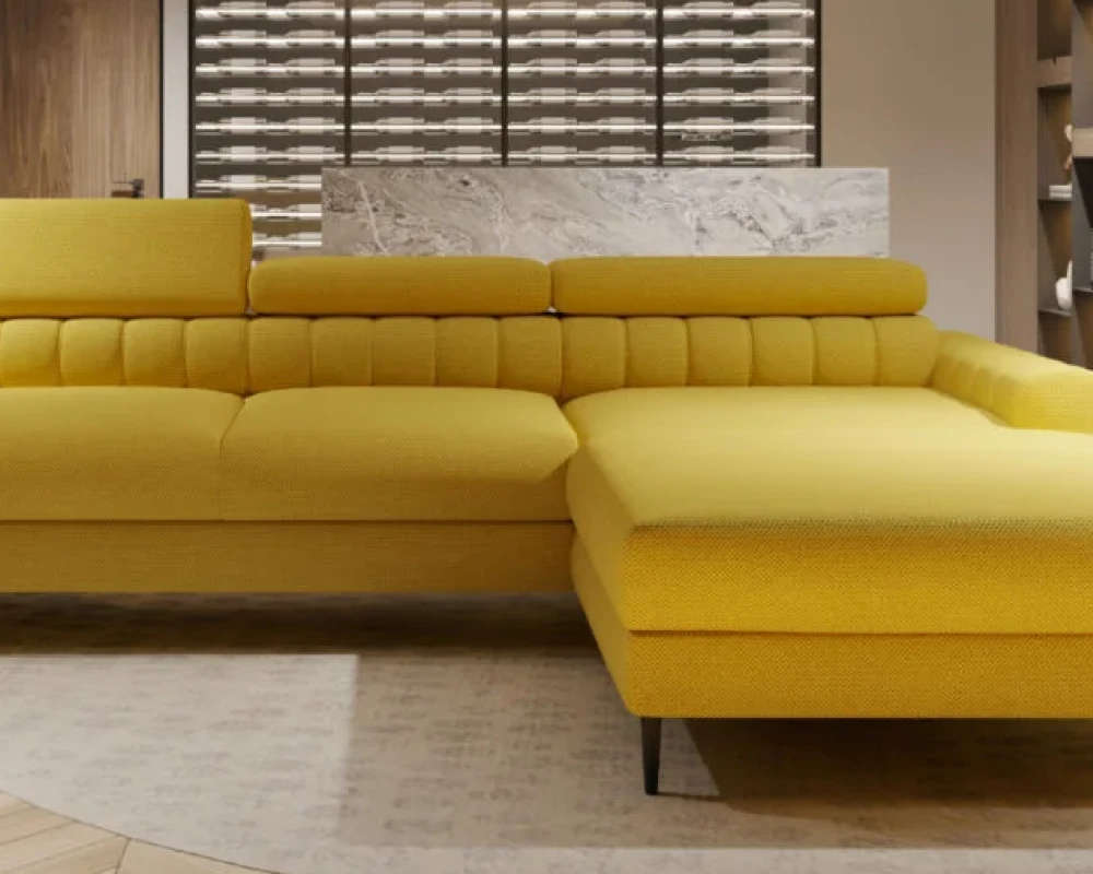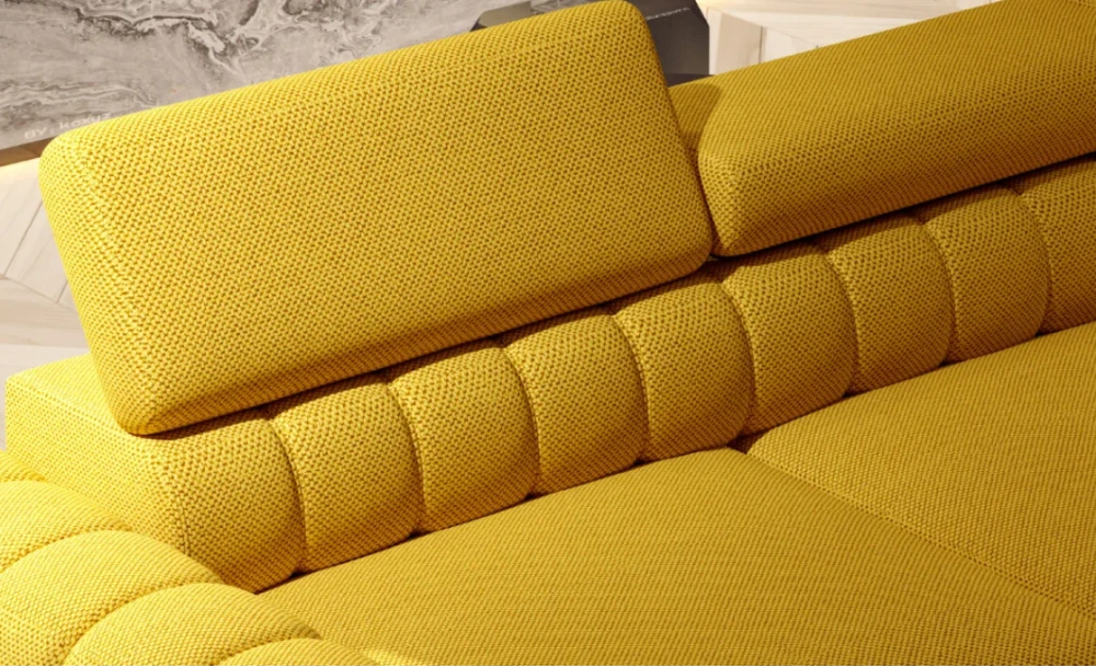 The Navas S corner sofa is a perfect choice for those who value comfort and functionality in everyday furniture use. Its design has been carefully considered to ensure maximum comfort – the seat is filled with a sinuous A-spring, elastic belt, and foam, resulting in softness and resilience, and guaranteeing resistance to deformation even with intensive use. The backrest, enriched with polyurethane foam and an upholstered belt, provides adequate back support. This model is equipped with three adjustable headrests that can be easily adjusted to your individual preferences, allowing for a comfortable body position while relaxing or reading a book. The 47 cm high seat and a well-thought-out 55 cm depth make this corner sofa ideal for afternoon relaxation or family gatherings.