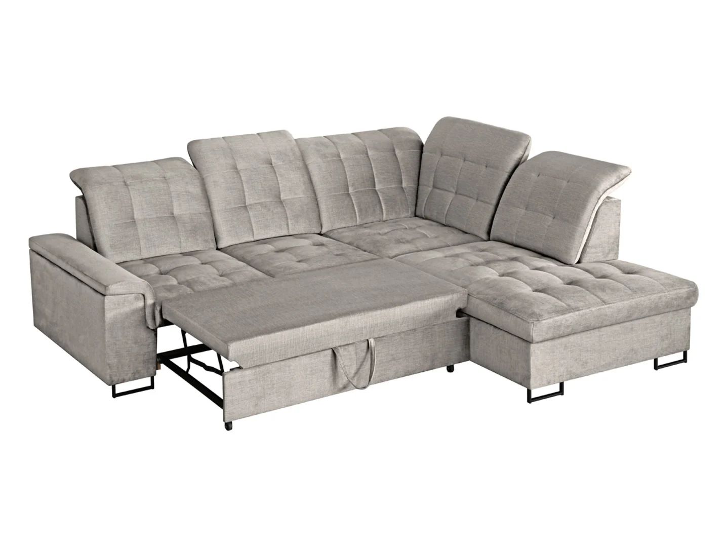 The Aragon Corner Sofa – Comfort and Modernity in Every Detail. The Aragon right-hand corner sofa perfectly combines modern design with functionality, providing comfort and practicality for everyday use. Its thoughtful features, such as adjustable headrests and seat, allow you to tailor the sofa to your individual needs, guaranteeing comfort in every situation. Comfort and Functionality: The Aragon corner sofa features a sleeping function, making it ideal for both daytime relaxation and a night’s sleep. When unfolded, the sleeping area measures 140 x 198 cm, providing space for two people, offering a comfortable place to sleep. The seat, filled with foam and sinuous springs, provides adequate body support, ensuring long-lasting comfort both while sitting and sleeping. Practical Features: The Aragon corner sofa features a built-in bedding compartment, making it easy to store textiles such as duvets, pillows, and blankets, helping you keep your space organized. This solution is especially practical in smaller spaces, where any extra storage space is valuable. Design and Style: One of the key features of the Aragon corner sofa is its adjustable headrests and seat, which can be adjusted to your preferences, providing the perfect position for relaxation. The simple, modern shape of the corner sofa combined with the elegant Voss 28 fabric makes it a perfect fit for a variety of interior designs, adding style and functionality. Special Features: Sleeping function – 140×198 cm, a comfortable sleeping area for two people. Built-in bedding storage – additional storage space. Adjustable headrests and seat – can be adjusted to individual needs. Seat filling with sinuous springs and foam – lasting seating and sleeping comfort. Modern design – perfect for contemporary interior designs. Summary: The Aragon corner sofa is the perfect solution for those who value modernity, functionality, and comfort all in one. Its adjustable headrests, sleeping function and built-in bedding storage make it a practical piece of furniture for everyday use that also adds elegance to the interior.