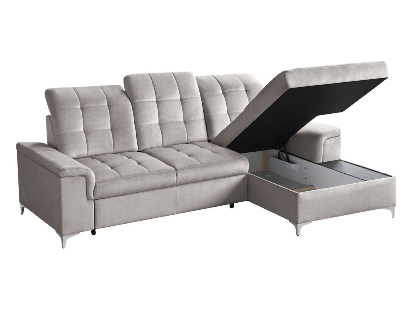 Ariado dešininė kampinė sofa, išskleidžiama, su skyriumi ir reguliuojamu atlošu, smėlio spalvos aksomas
