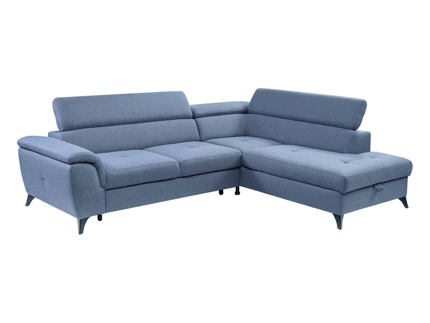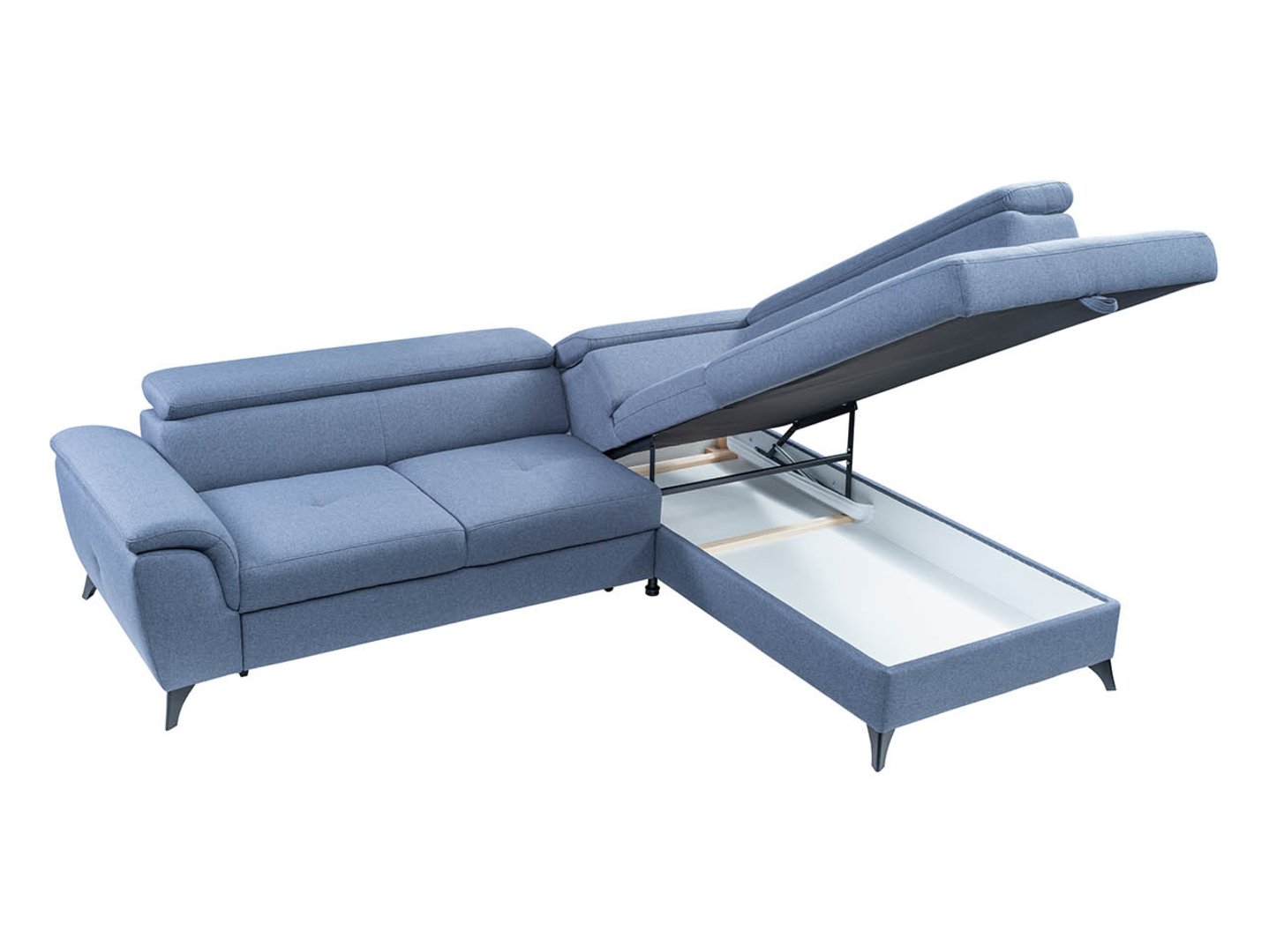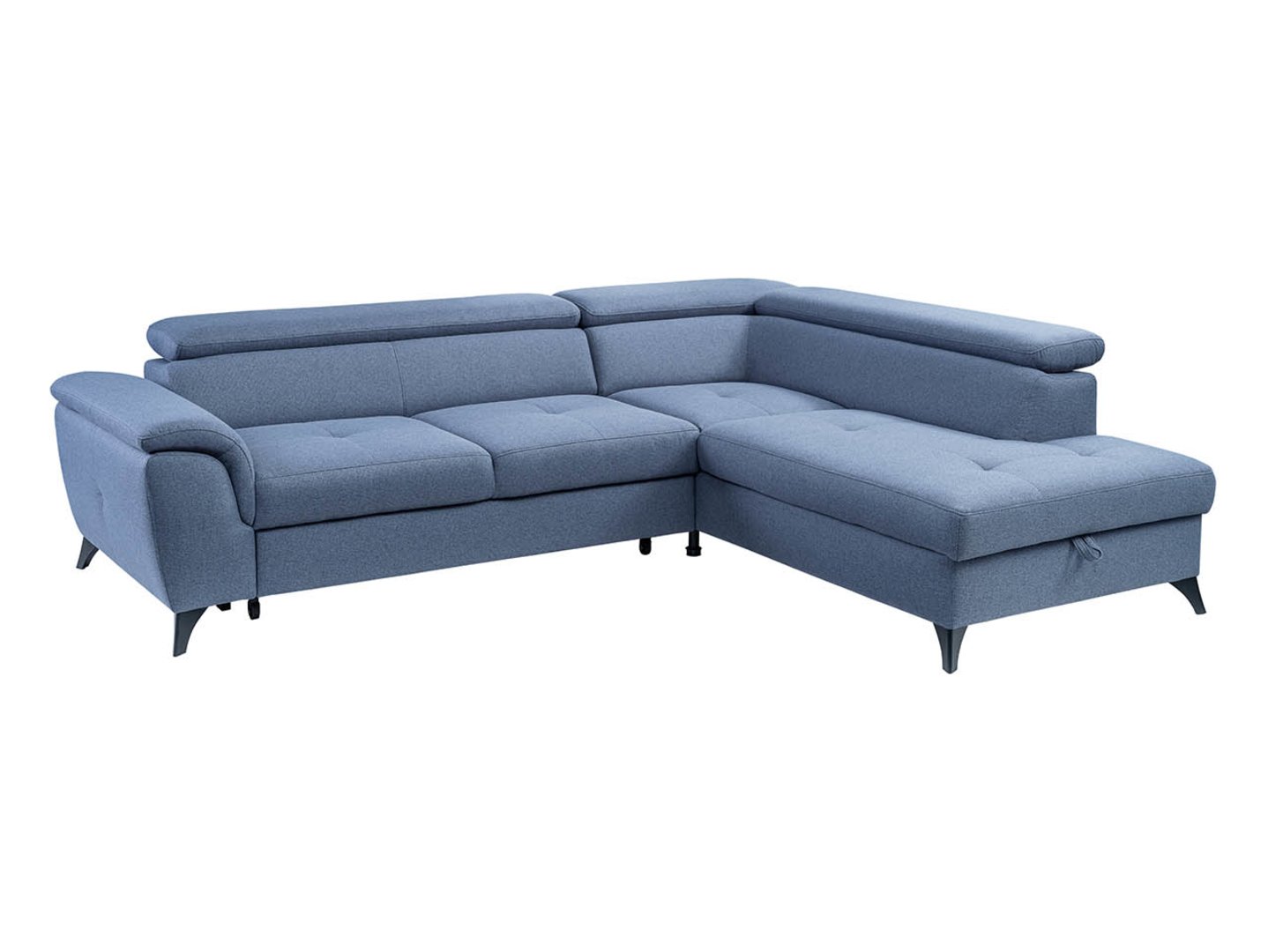 The dolphin-type reclining mechanism, supported by rubberized rollers, protects your floor from scratches. The additional relaxation space, measuring 126 x 183 cm, makes the Aldeia corner sofa an ideal place for guests. The mattress is made of upholstery fabric, which enhances the appearance of the living room when the sofa is unfolded.
