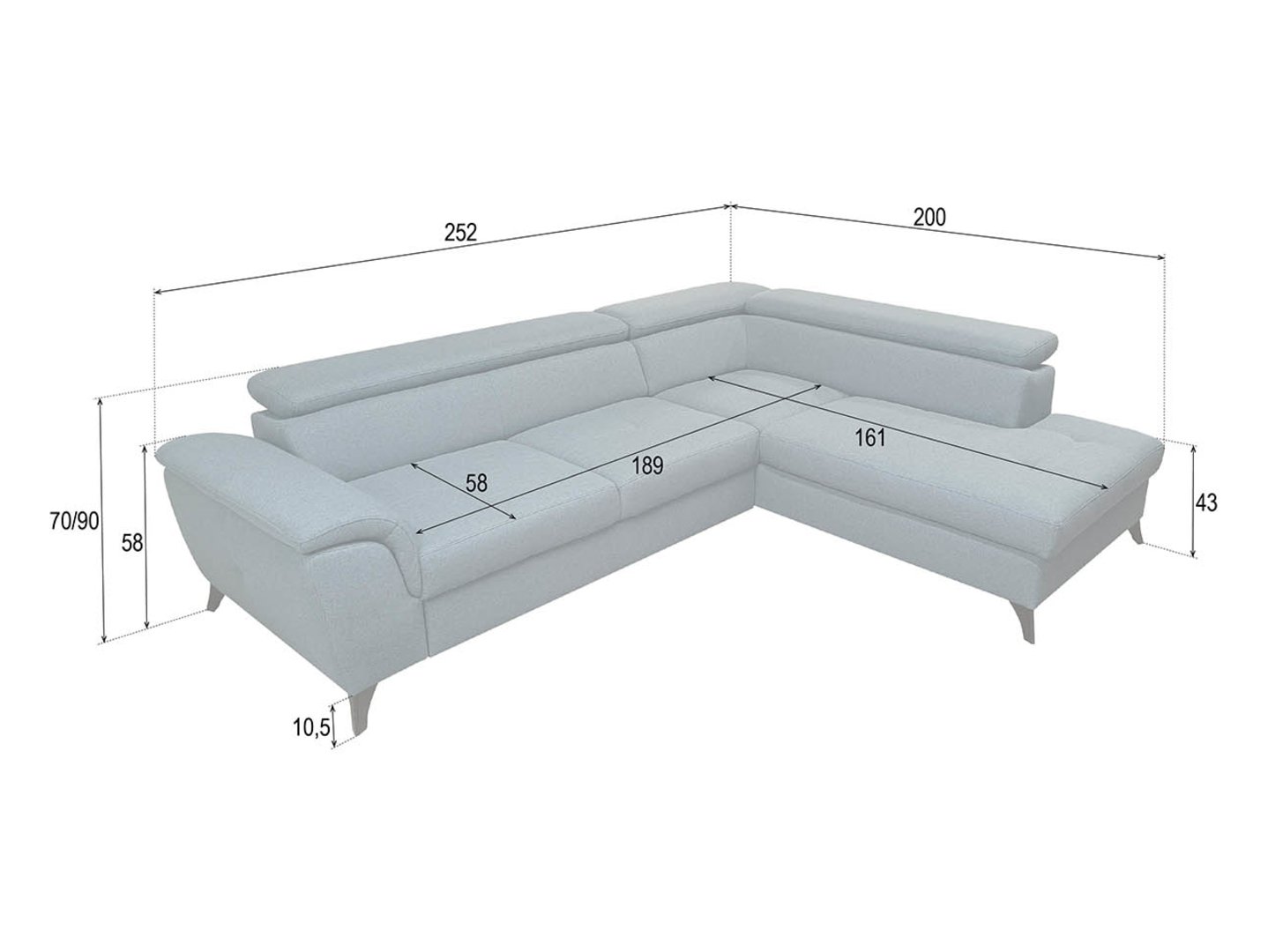 Both sections of the corner sofa are equipped with backrests, providing increased comfort. This ensures that everyone in the family will find a comfortable space to relax and unwind.