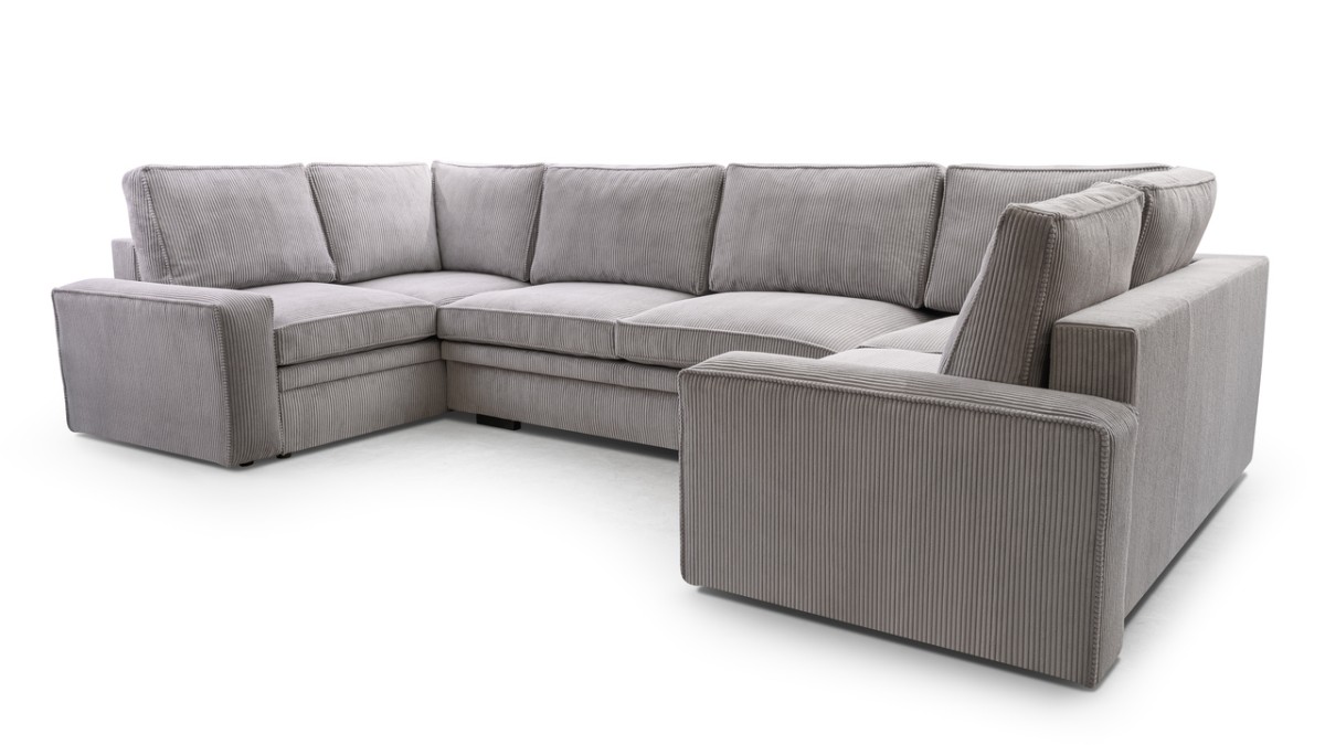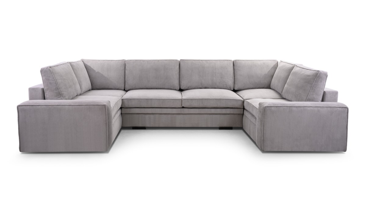 Back upholstered in your choice of fabric, 8 cushions, corduroy fabric.