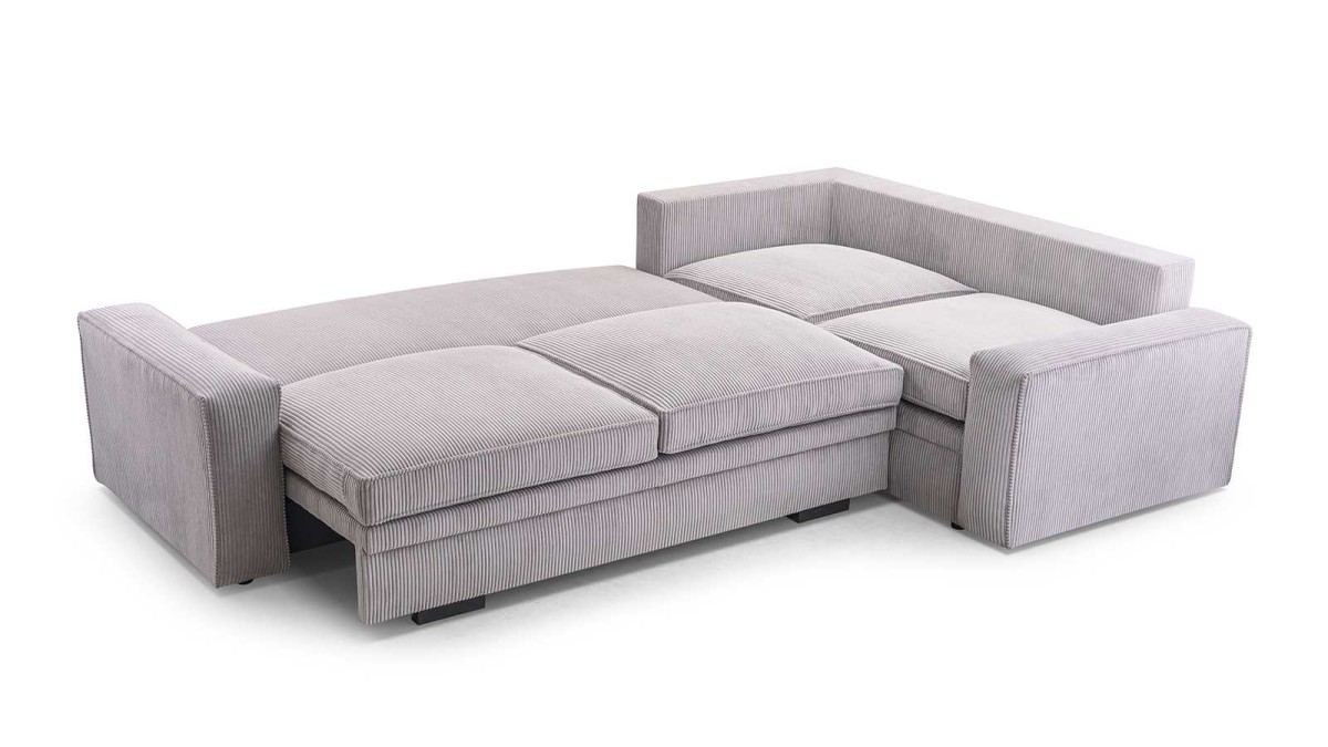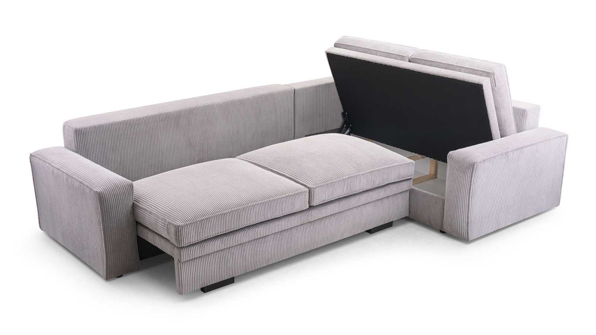 The extendable corner sofa has a bedding compartment