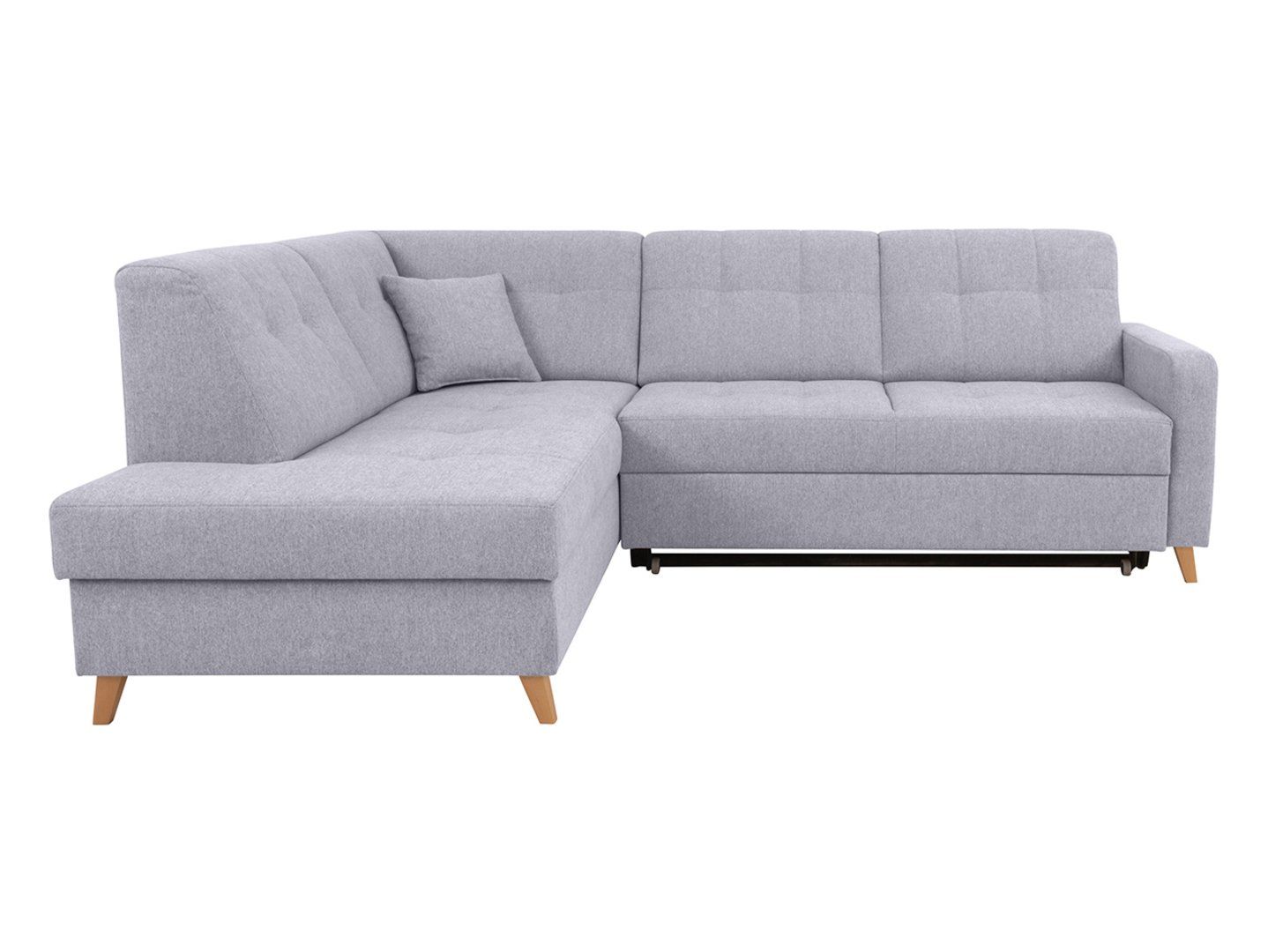 Lars Corner Sofa – Choose Quality and FunctionalityComfort and FunctionalityThe Lars left-hand corner sofa, measuring 232x83x187 cm, is a choice for those who value comfort and solid craftsmanship. The fixed, raised backrest provides adequate back support even during extended sitting – perfect for relaxing with a book, watching a TV series, or gatherings with loved ones. The filling of sinuous springs and foam guarantees the seat’s elasticity and durability, ensuring the piece maintains its comfort for years to come.Practical FeaturesThe corner sofa is equipped with a 125×189 cm dolphin-style sleeping function, allowing for quick and convenient unfolding. Rubberized wheels incorporated into the mechanism protect floors from scratches. An additional feature is the bedding compartment – ​​ideal for storing blankets, pillows, or other textiles you want to have close at hand but out of sight.Design and StyleThe Lars model is an elegant piece of furniture with a balanced aesthetic. Decorative single-needle stitching lends harmony to the shape and highlights its meticulous craftsmanship. The gray Primo 88 fabric introduces a subdued elegance that blends seamlessly with a variety of interior designs. Raised, beveled wooden legs add a light and modern touch to the corner sofa. A decorative pillow is included to complete the look. Special features: Dimensions: 232 x 83 x 187 cm Sleeping function: dolphin type – sleeping area 125 x 189 cm Filling: zigzag springs and foam – resilience and comfort Raised backrest: improved back support Bedding compartment: hidden storage space Roller mechanism: floor protection Legs: wooden, beveled – lightness of form and stability Fabric: Primo 88 – elegant gray upholstery Decorative pillow: included Layout: left-handed Summary The Lars corner sofa is a functional and aesthetically pleasing piece of furniture that will work well in both small and larger living rooms. A comfortable backrest, sleeping function, and large storage compartment make this an ideal option for those who value order, comfort, and elegant design. Gray upholstery and wooden legs combine timeless aesthetics with modernity.