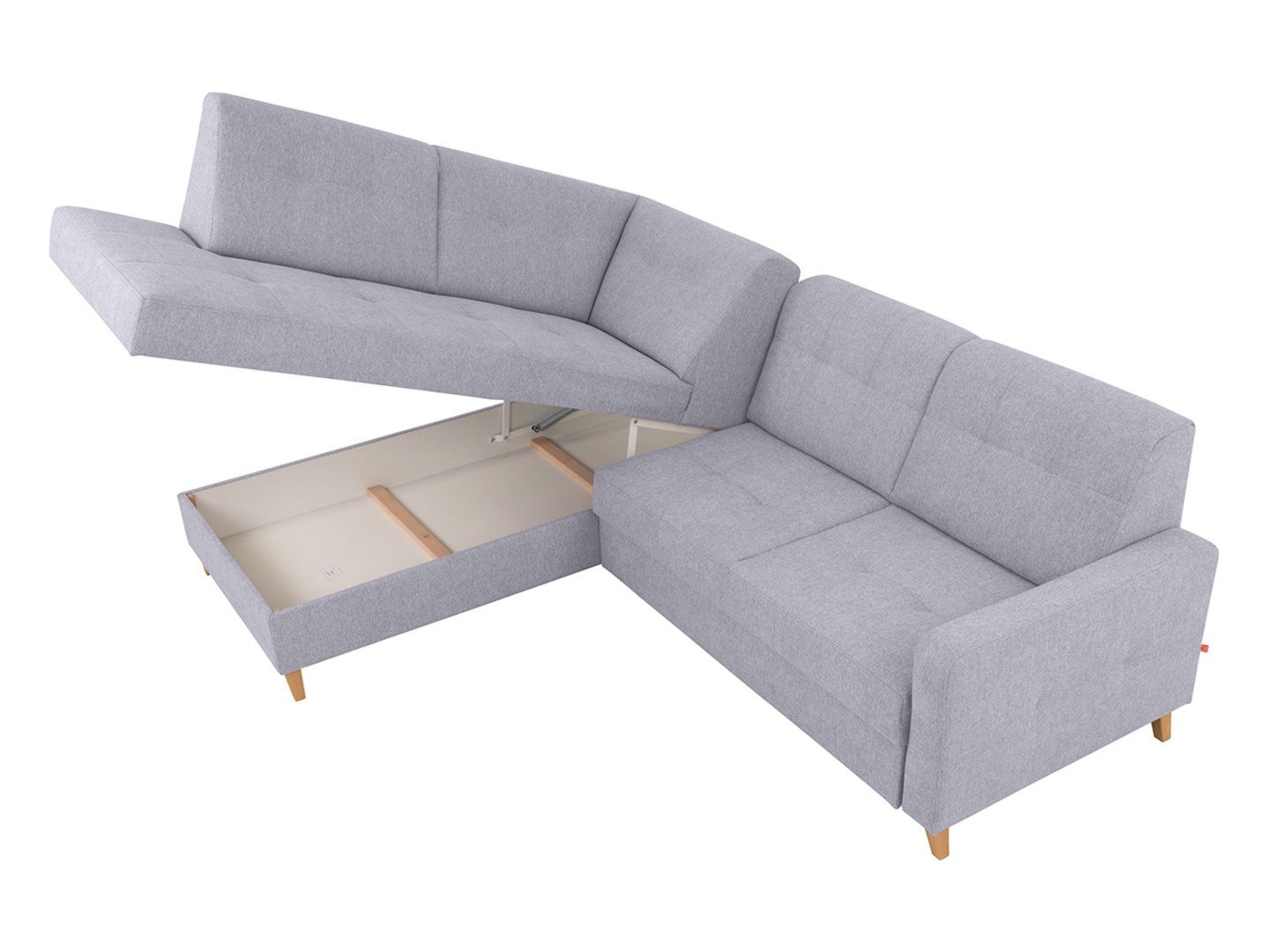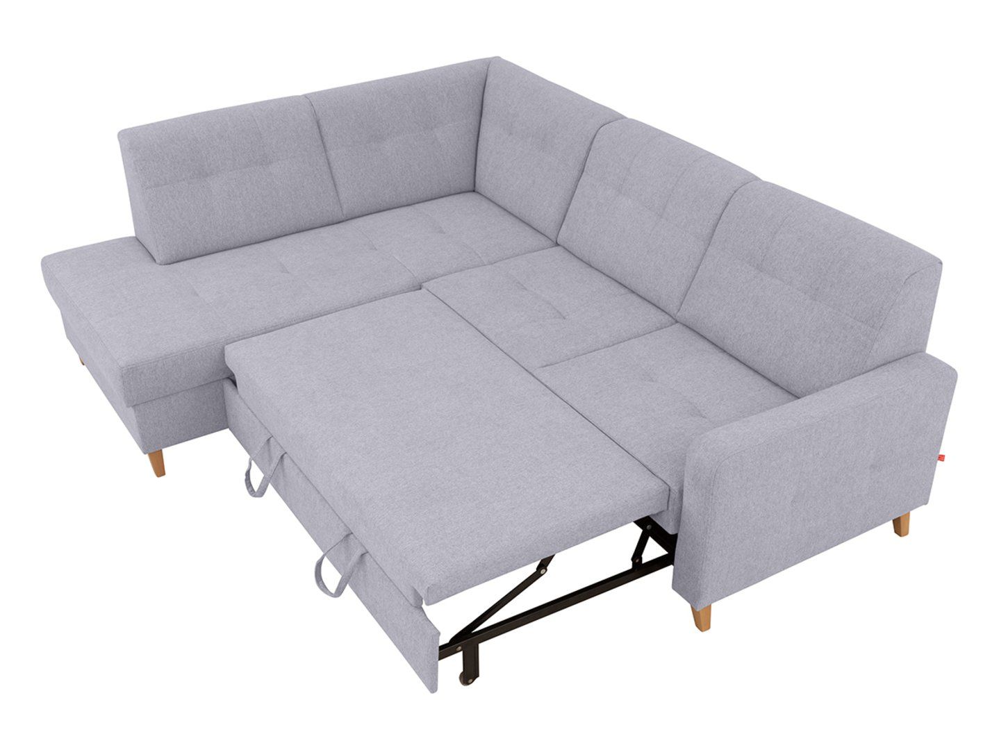 Kairinė išskleidžiama kampinė sofa su daiktadėže LARS pilka