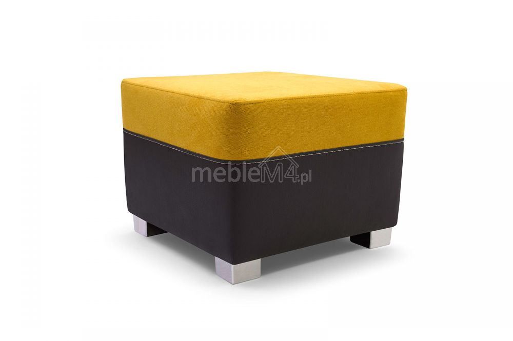 Back upholstered in your choice of fabric, 2 cushions, additional pouffe, and chrome plastic legs.