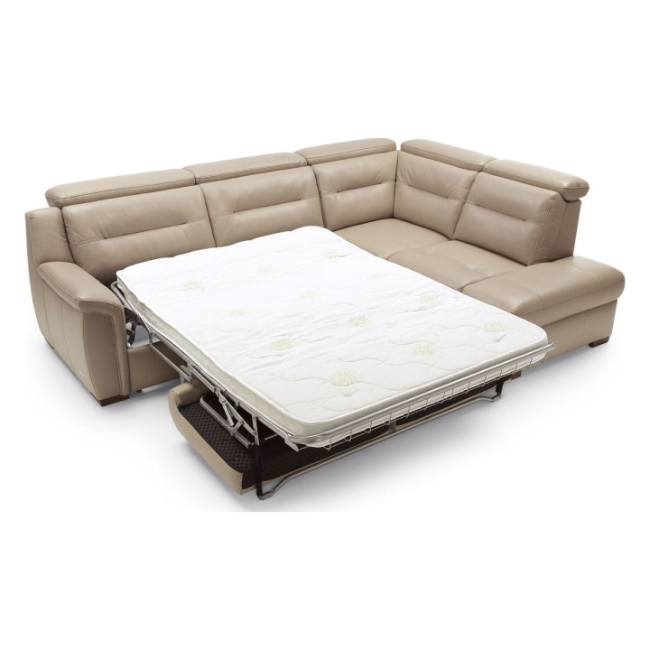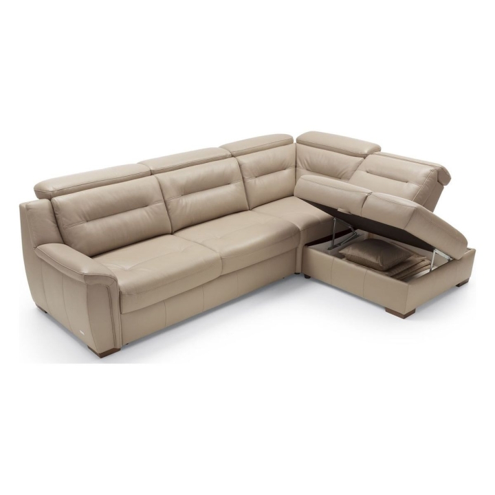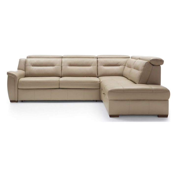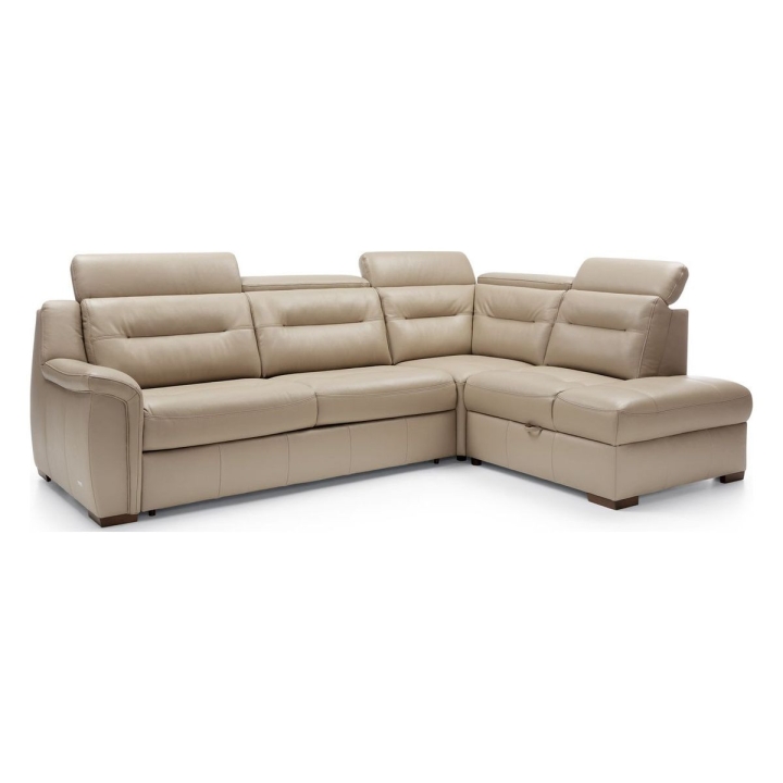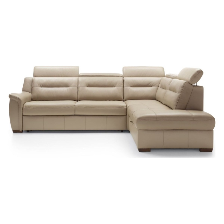 Thanks to the Italian-style sleeping function, the corner sofa can easily be converted into a bed. The fold-out mechanism conceals a 140 x 190 cm mattress, ensuring a comfortable night’s rest. A storage compartment under the seat provides convenient storage for duvets and pillows. The seat is filled with zigzag springs, high-resilience foam, and polyurethane foam, providing adequate support. The backrest, meanwhile, features elastic straps and polyurethane foam for increased durability and softness. The entire piece is supported by wooden legs, available in shades of wenge, antique cherry, natural beech, natural oak, walnut, silver, and black.