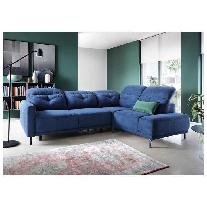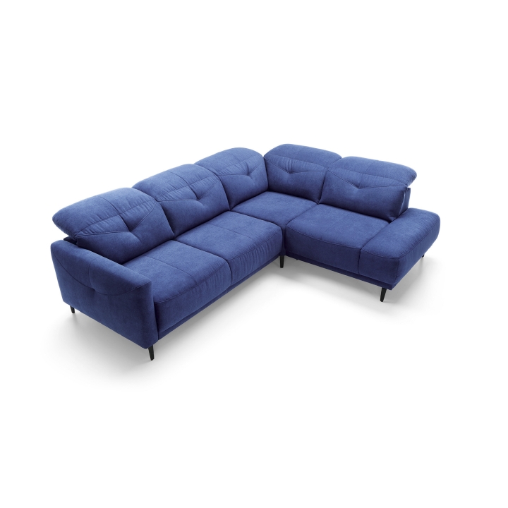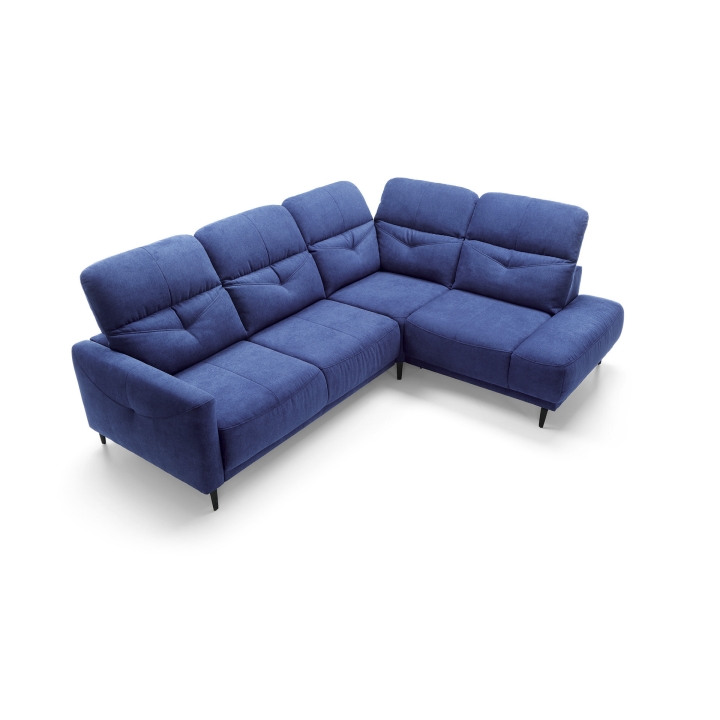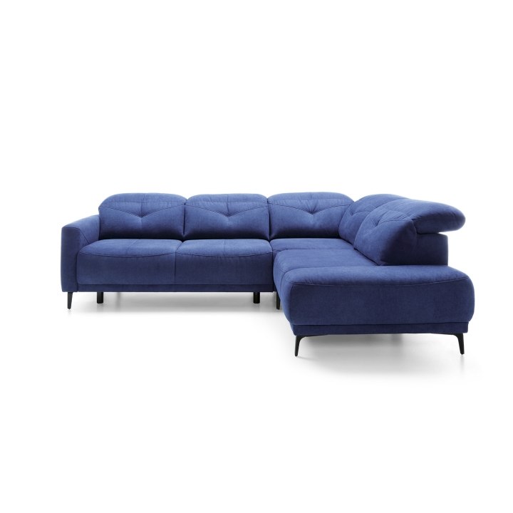 The seat is made with sinuous springs and two types of foam: high-resilience foam and polyurethane foam, ensuring the furniture retains its shape for years to come. The backrest is supported by static belts and filled with polyurethane foam and a silicone ball insert, ensuring softness and adequate back support. These features ensure a high level of comfort during use. The Sandra model is available in left- or right-hand configurations (L/R), allowing you to customize it to your room’s layout. A wide selection of upholstery fabrics allows you to create a corner sofa that perfectly complements your interior design. Black metal legs give the sofa a modern character, and their height makes it easy to keep clean underneath.