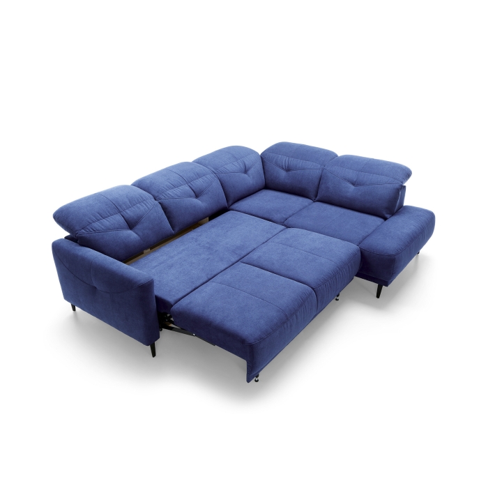 During daytime relaxation, users can enjoy adjustable headrests that allow them to adjust the backrest to their individual needs. At night, the corner sofa transforms into a comfortable sleeping area measuring 120×195 cm, providing adequate support and space. Additionally, it features a bedding compartment for safe and convenient storage of textiles.