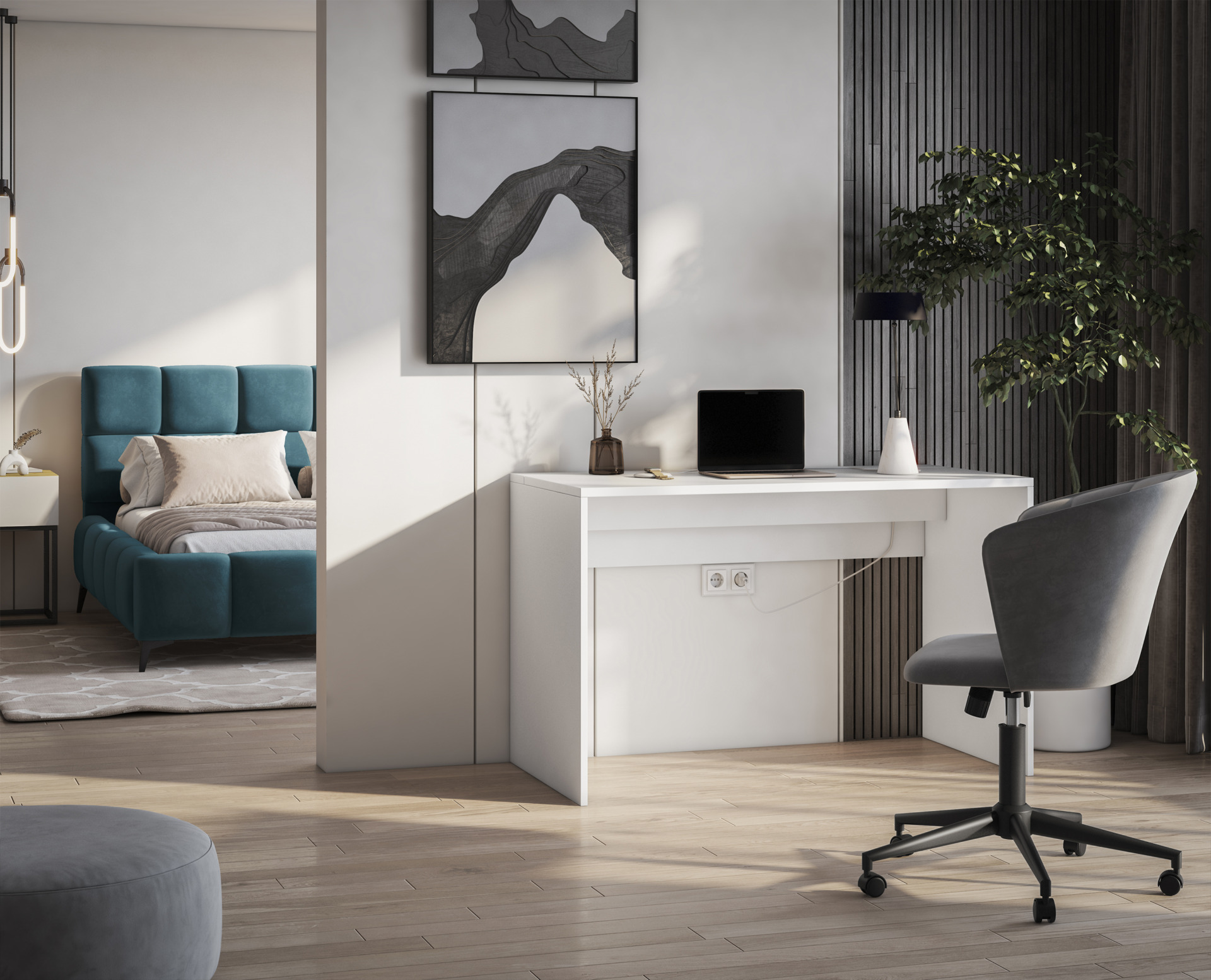 The Nevy desk is a modern and functional solution for your office space. Its dimensions, measuring 120/140x60x75 centimeters, provide ample workspace without taking up too much space. The Nevy desk features cable management, allowing you to neatly hide any electrical cords and ensuring a tidy office space.