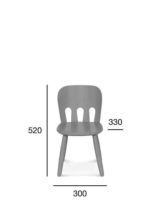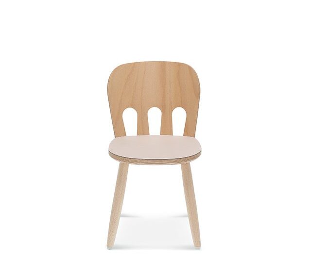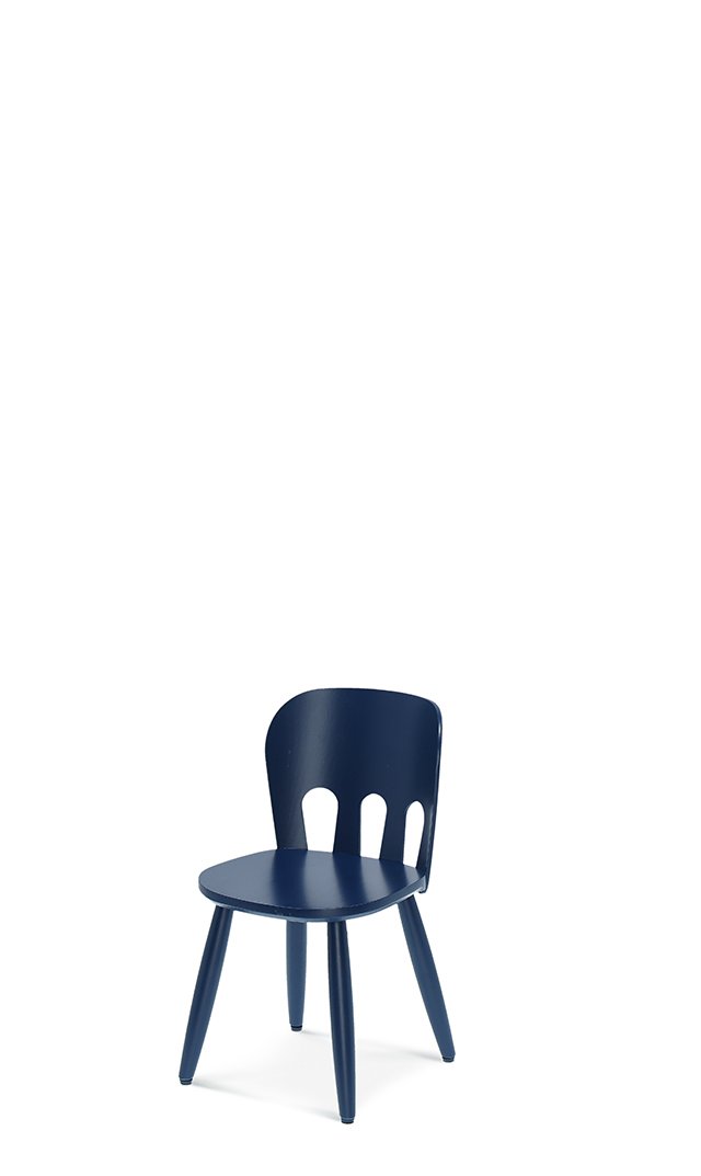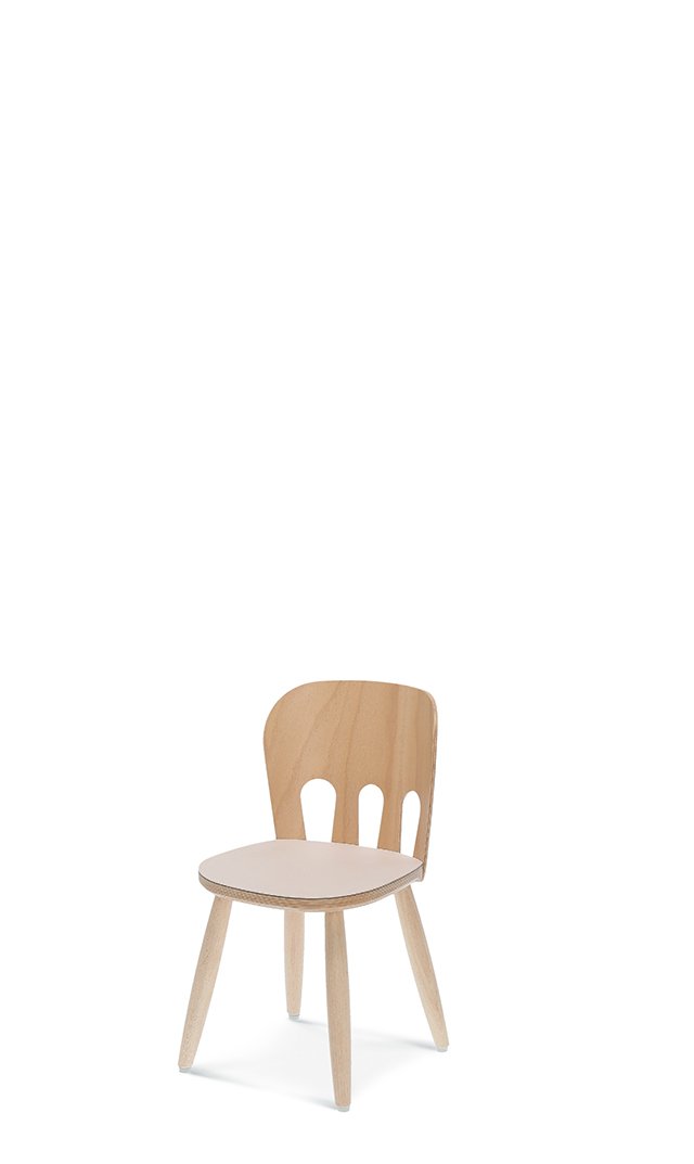 The wooden Nino chair is perfectly sized for a child. It was designed with preschool-age children in mind. The distinctive rounded plywood backrest with a small perforation provides a sense of comfort and security. The chair’s widely spaced legs are stable and durable, even during more dynamic play.