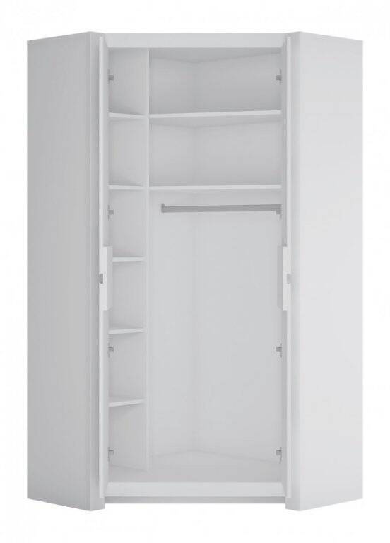 Be enchanted by the modern elegance and functionality of the Novi NVIS03 – 2-Door White Corner Wardrobe. Discover the perfect blend of aesthetics and practicality, bringing harmony to your living space, making the most of every inch of available space. This carefully designed corner wardrobe is the perfect solution for those who want to maximize the potential of corners in their home while maintaining a sense of spaciousness and lightness. Modernity is the keyword for the Novi NVIS03 corner wardrobe, whose sophisticated white design makes it the perfect complement to any contemporary home. With dimensions of width: 103.3 cm, height: 198.5 cm, and depth: 103.3 cm, the wardrobe blends seamlessly with a variety of interior designs. The materials it’s made of—laminated board and high-quality MDF—ensure durability and ease of cleaning. Exceptionally user-friendly, the wardrobe features a handleless system, which not only adds to its minimalist charm but also facilitates everyday use. Elegantly decorated fronts with subtle grooves are fingerprint-resistant, ensuring the wardrobe maintains a clean and attractive appearance for years to come. The concealed hinges make opening the doors smooth and effortless, while the included plastic feet ensure stability and protect the floor from scratches.