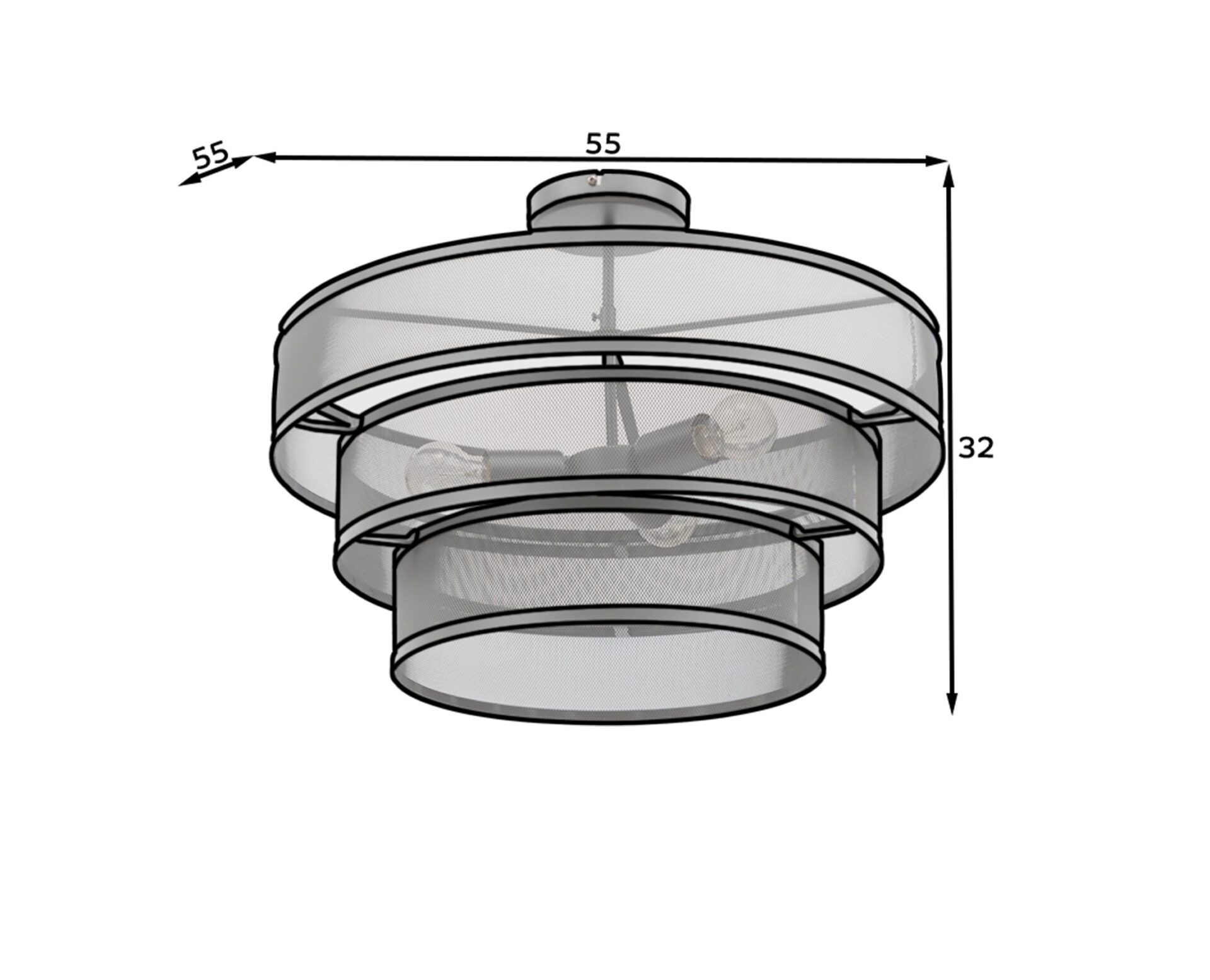 The Orabela ceiling lamp is a unique lighting fixture that combines functionality with exceptional design. Its dimensions are 55 cm wide, 55 cm long, and 32 cm deep, allowing it to blend harmoniously into a variety of spaces. Made of high-quality steel, both the lampshade and base are robust and durable. The Orabela lamp features three light sources that provide even and sufficient lighting for the room. The E27 socket allows for easy installation of various bulb types, allowing you to adjust the light intensity to your personal preferences. The maximum light output of 15W not only guarantees effective illumination but also minimizes energy consumption. The lamp has an IP20 sealing rating, providing adequate protection against dust and small particles, contributing to its durability. The entire structure is finished in an elegant black color, giving the interior a distinctive character. The lampshade is made of solid steel mesh, echoing the austere and modern loft style. The lampshade consists of three cylinders, giving the lamp a unique look. The Orabela ceiling lamp not only serves as a practical light source but also provides a designer accent that will distinguish your interior. Its solid construction, functionality, and original design make it an excellent choice for those seeking not only light but also aesthetic value.