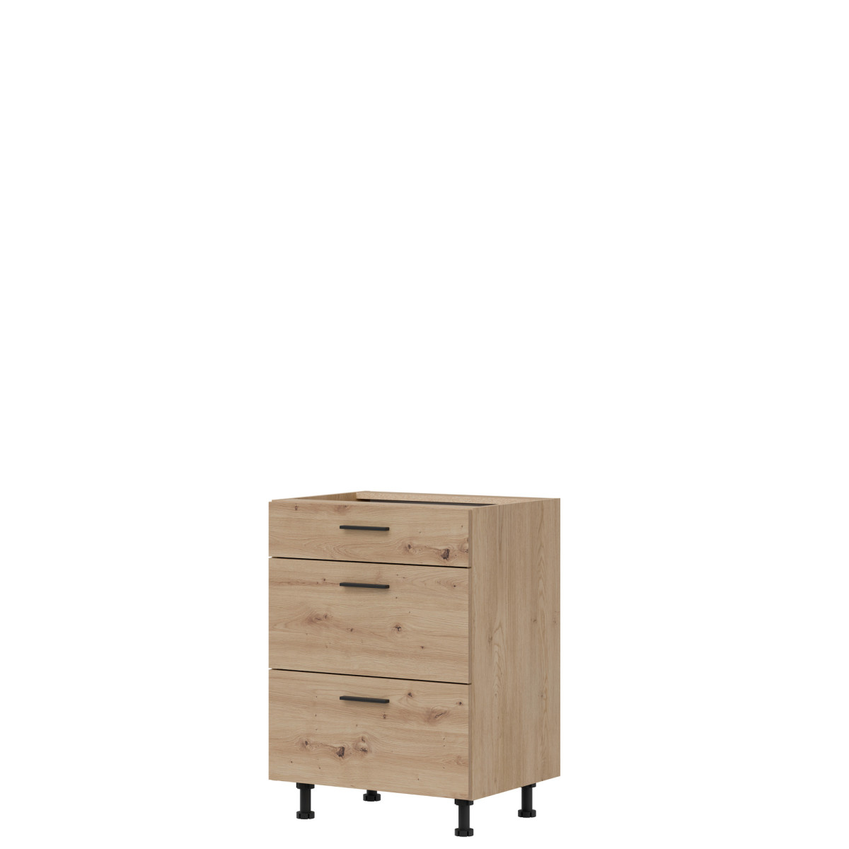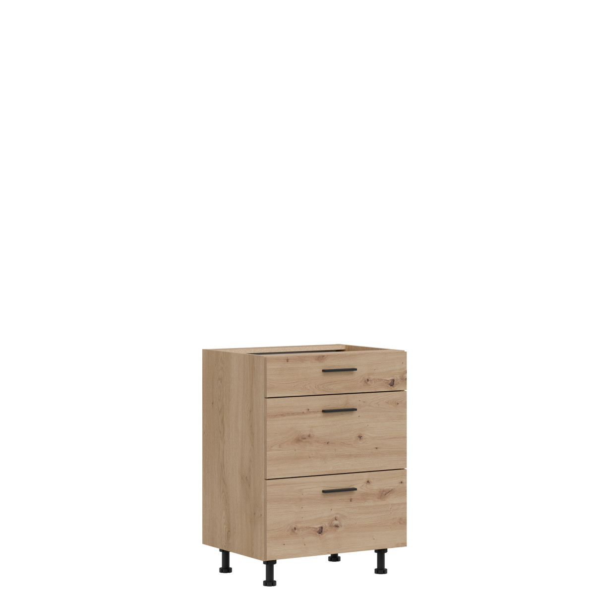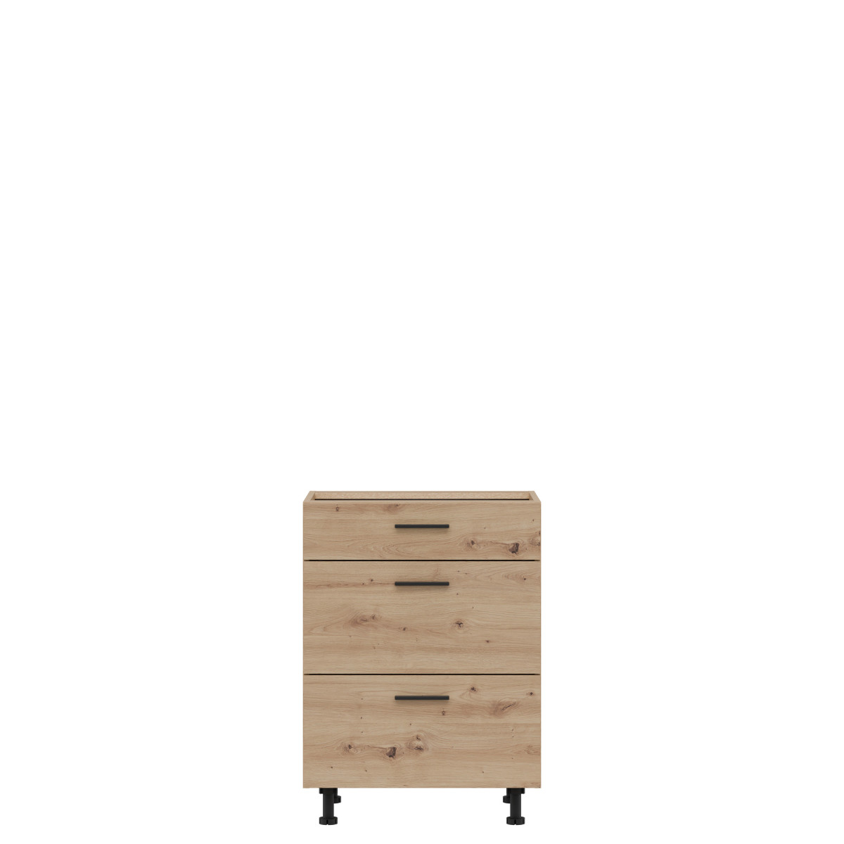 Width 60 cm Depth 46.3 cm Height 82 cm Product weight with packaging 22.35 kg Manufacturer’s code / symbol PK18/PF18 Collection name PATI Number of product packages 2 Style Modern Equipment Assembly instructions / assembly accessories Assembly For self-assembly Body color Cremona Torro Oak Body finish material / type / thickness 16 mm furniture board Body bottom finish / material / type / thickness 16 mm furniture board Front available colors Cashmere, Cremona Torro Oak, Artisan Oak, Light Graphite Front finish material / type / thickness 16 mm furniture board Front handle / finish / color Plastic / black Soft-close drawer system Optional Leg / finish / color Adjustable / plastic / Black Leg height 100 mm Number of drawers 3