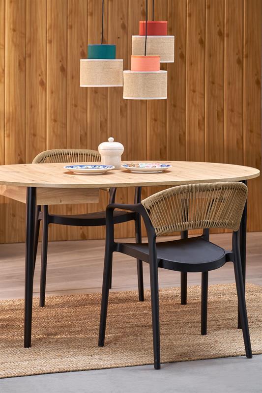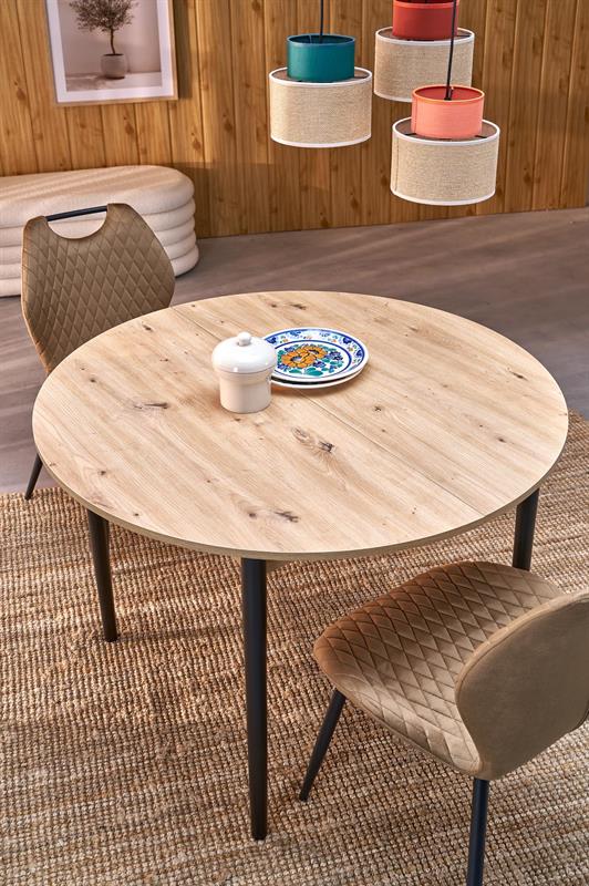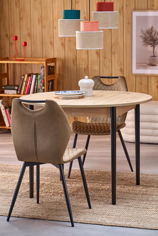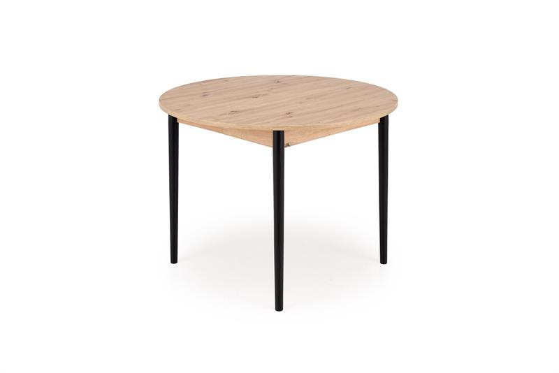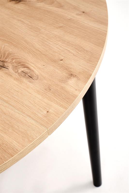 extension table, dimensions: 102-142/102/75 cm, material: laminated chipboard / solid beech wood, color: top – artisan oak, legs – black