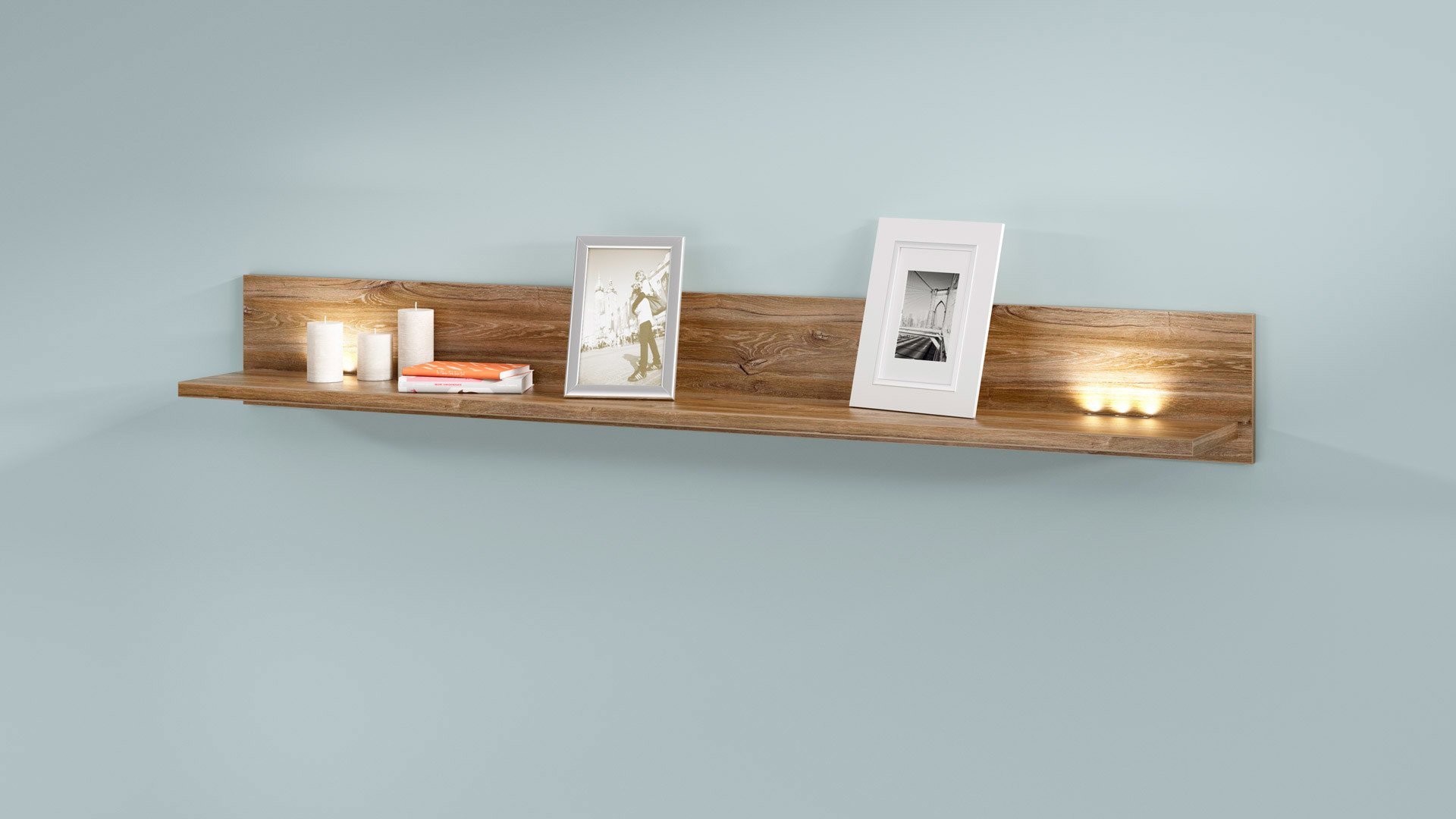Gent Shelf – Wide Display. If you’re looking for a versatile wall shelf that efficiently utilizes wall space, even in small spaces, the Gent shelf may meet your expectations. Let me show you all the advantages of this shelf, which allows for a wide display of your favorite decorations. The Gent shelf is a solution that helps you use wall space efficiently without taking up much floor space. The shelf top is equipped with modern LED lighting, which comes as standard. This lighting adds not only functionality but also aesthetics – the subtle light will perfectly highlight your decorations and create a cozy atmosphere in the room. You can use it to highlight your favorite items and create an impressive presentation. One of the key advantages of the Gent shelf is its adjustable height. You can hang it at any height, allowing you to adapt the interior design to your preferences and needs. This flexible solution allows for flexible space arrangement. The Gent shelf is available in a warm Stirling oak color, with a visible grain pattern and the tactile texture of real wood. This universal color provides a perfect backdrop for decorations and accessories in a wide range of shades, allowing you to easily match it to your interior design. The Gent collection is a simple way to create a stylish and fashionable interior. This collection features a wide variety of elements that you can combine to create a cohesive and harmonious look throughout your apartment. It’s the perfect solution if you value cohesion and elegance in your interior. In short, the Gent shelf is a versatile solution that allows for a wide range of display options for your favorite decorations. Its adjustable height, modern LED lighting, elegant design, and variety of colors make it a perfect addition to your interior, creating a space for expressing your style and unique presentation.