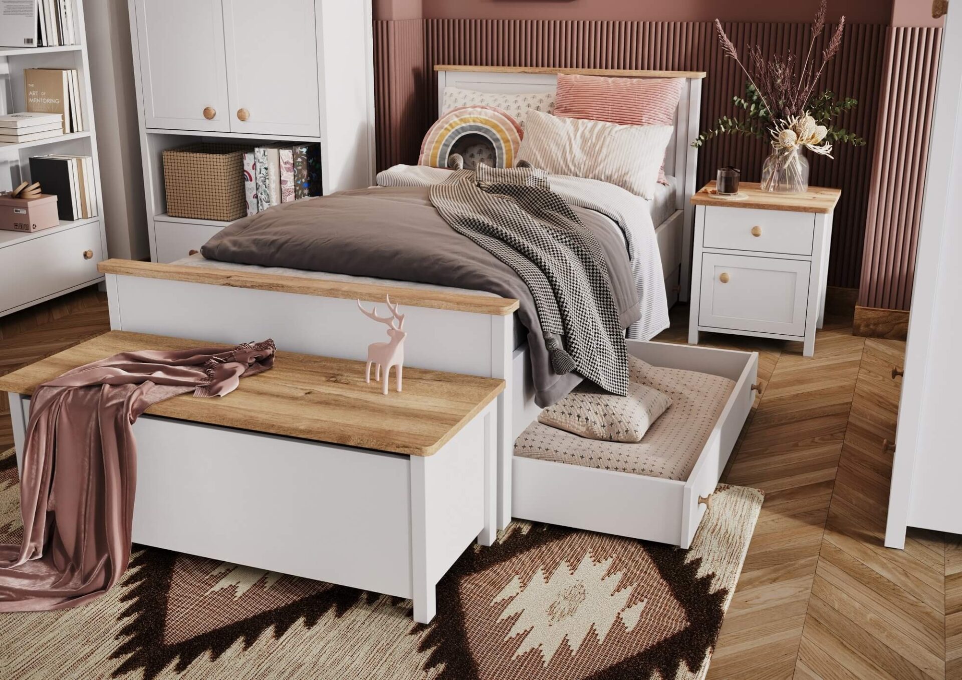 Model: SO-14 Color: white / nash oak Dimensions: Width: 110cm Height: 20cm Depth: 22cm Basic information: shape name: SO-14 collection name: STORY shape index: SO14BDN color: white / nash oak furniture type: shelf width: 110 cm height: 20 cm depth: 22 cm shape weight: 8 kg assembly: requires assembly collection style: modern interior type 1: youth room interior type 2: bedroom interior type 3: wardrobe equipment: 1x shelf Material: back wall: HDF board; 16mm finishing of the visible part of the back wall: laminate finishing of the invisible part of the back wall: laminate back wall mounting: white back wall color: white shelf: laminated chipboard; 25mm shelf edge finish: B 1.0mm number of edge bandings: 1 shelf load capacity: 5kg shelf color: Nash oak number of shelves: 1 Important: This shelf is manufactured to individual customer order. Cancellations are not possible after 48 hours of placing your order. Please shop carefully.