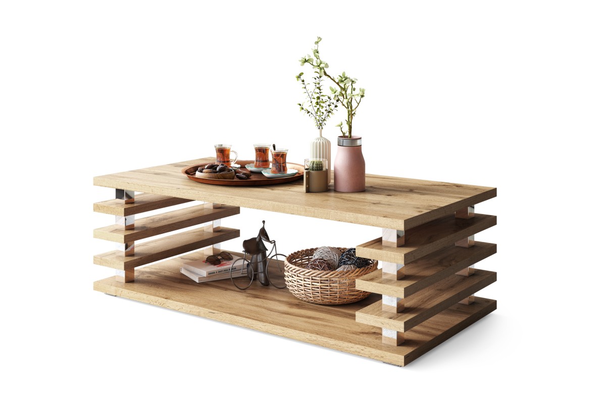 The coffee table is made of 28 mm thick matte chipboard, laminated on both sides, finished with 1 mm ABS edging.