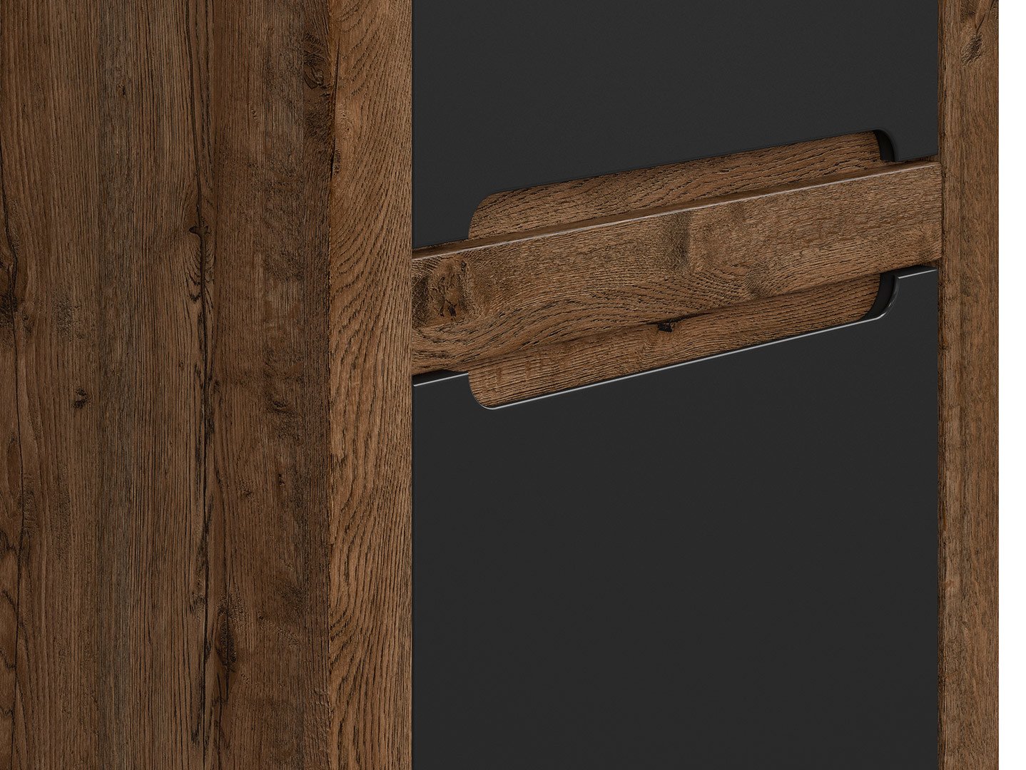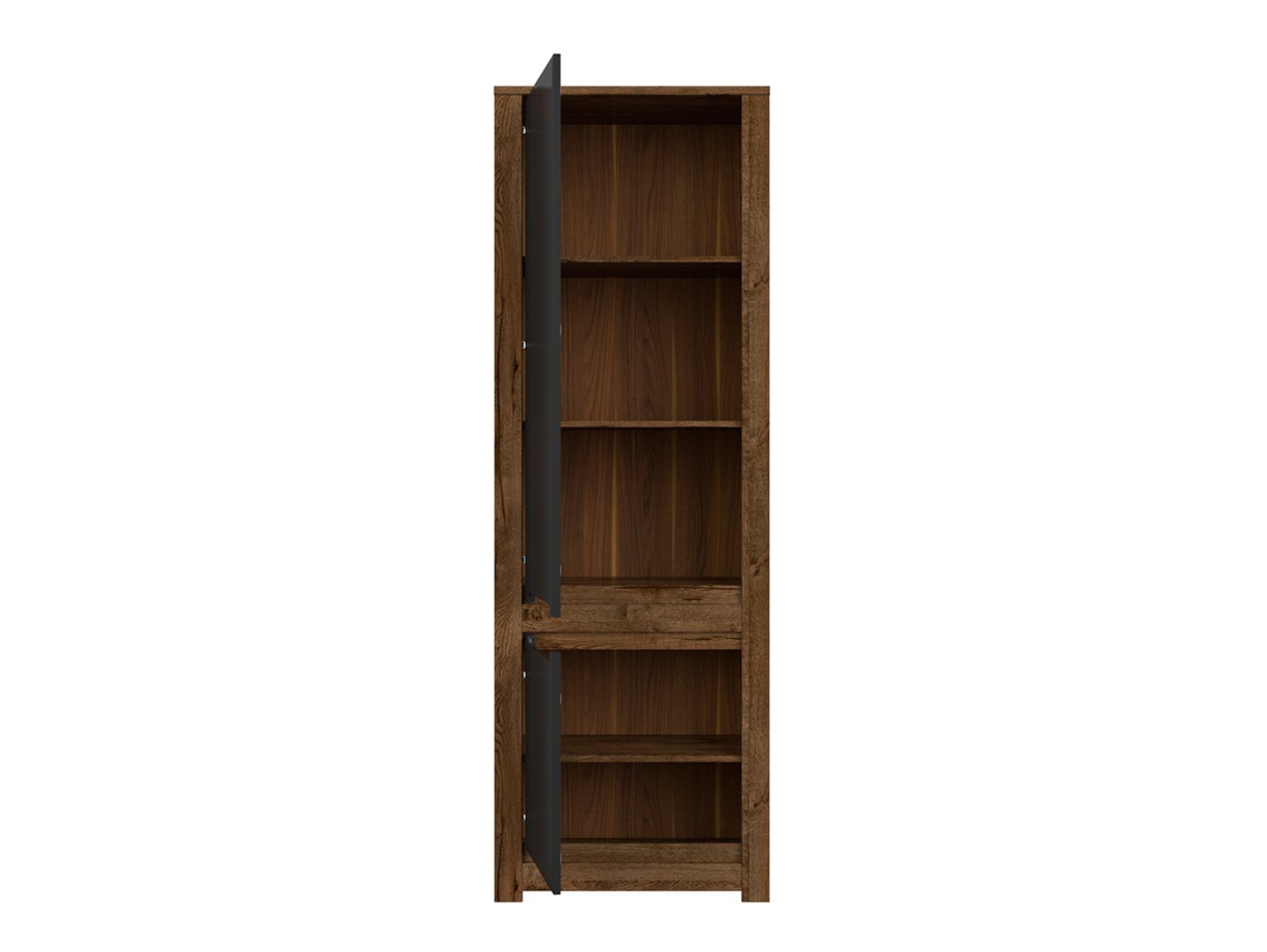 Ruso Bookcase – Your Secret Hiding Place and Order. The Ruso collection is distinguished by its simple form, elegant, dark color, and thoughtful details, making it a perfect fit for classic interior design. Here’s why the Ruso bookcase is an excellent choice if you’re looking for storage, hiding your secrets, and keeping your living room tidy: We don’t always want to show everything to our guests, so it’s important to have a place to store our personal belongings in the living room. The two-door Ruso bookcase with practical shelves is the perfect solution for keeping things organized. The April oak-finished body and matte black fronts of the Ruso bookcase create a contrasting look that adds character to the piece. The visible wood grain adds visual charm. The indentations in the fronts function as handles, making using the bookcase easier and more comfortable. Striking plinths add elegance and emphasize the character of the Ruso collection. The Ruso bookcase comes with a lava matt strip that can be installed in the recesses of the fronts, giving the piece an even more refined aesthetic. Hinges with a soft-close system and adjustable braking force make the Ruso bookcase comfortable to use every day, and the furniture closes without noise or effort. The Ruso collection offers a wide range of elements, allowing you to create a unique interior design tailored to your needs. In short, the Ruso bookcase is not only a functional storage unit but also a unique interior element that gives it a unique character. Thanks to its contrasting colors, practical details, and high-quality workmanship, the Ruso bookcase is the perfect solution for keeping your living room tidy and hiding your secrets. The Ruso collection offers numerous arrangement options, so you can choose the elements that best suit your space and needs.