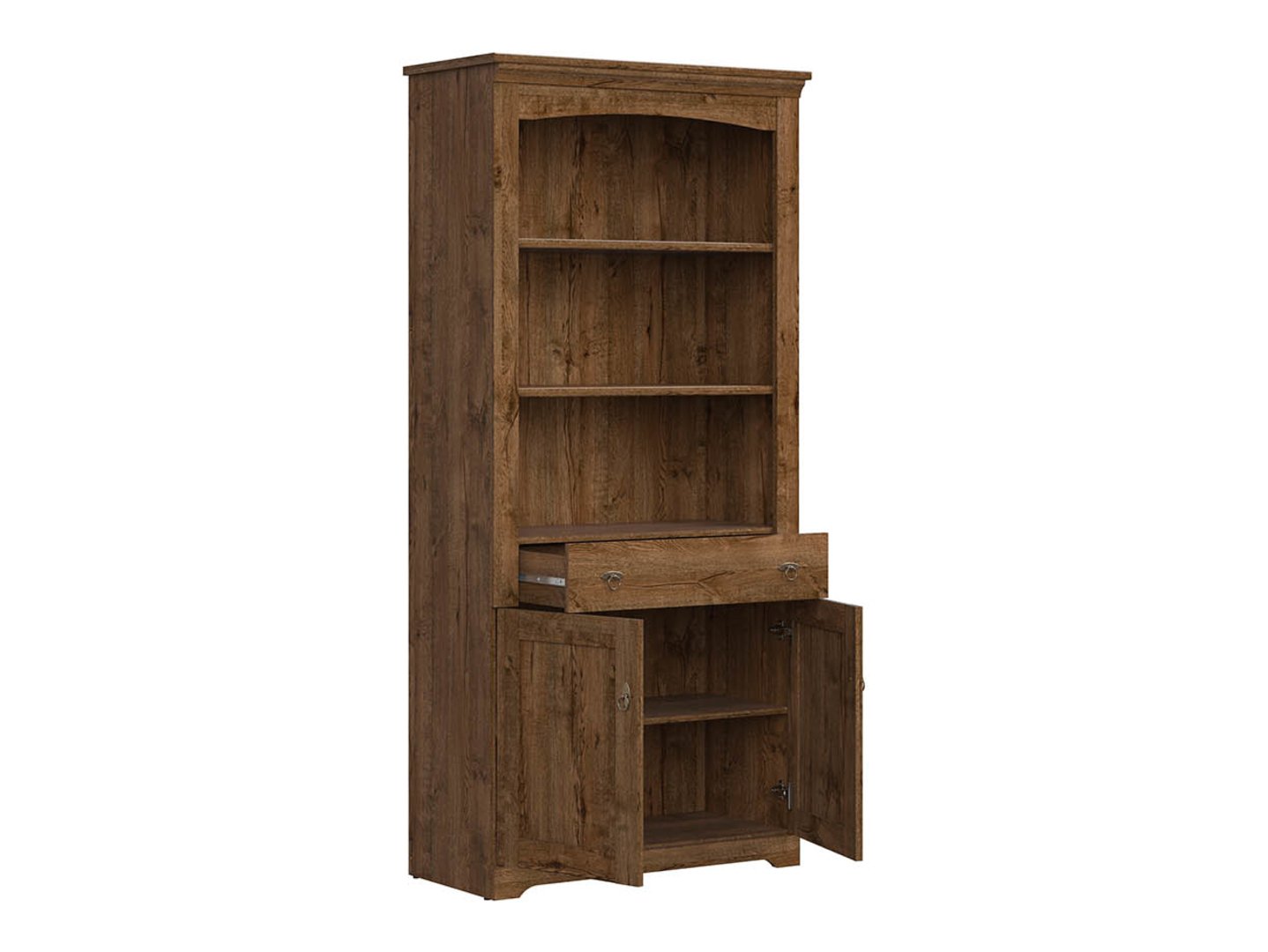 The Patras Bookcase is the perfect addition to a timeless living room décor. Its open design offers stylish shelves for displaying various items, such as porcelain or books, while a practical cabinet allows you to store items that don’t need to be on display. Additionally, a wide drawer in the center of the bookcase is the perfect place to store small items. The warm April oak color, characteristic of the Patras collection, highlights the elegance of the piece, while the visible wood grain gives it a unique character. Stylized handles in an antique silver finish not only add a decorative touch but also facilitate access to the contents of the cabinets and drawers. Branded soft-close accessories make using the bookcase quiet and comfortable. By combining the spacious Patras bookcase with other elements from the collection, you can create a cohesive space perfectly tailored to the needs of your family.
