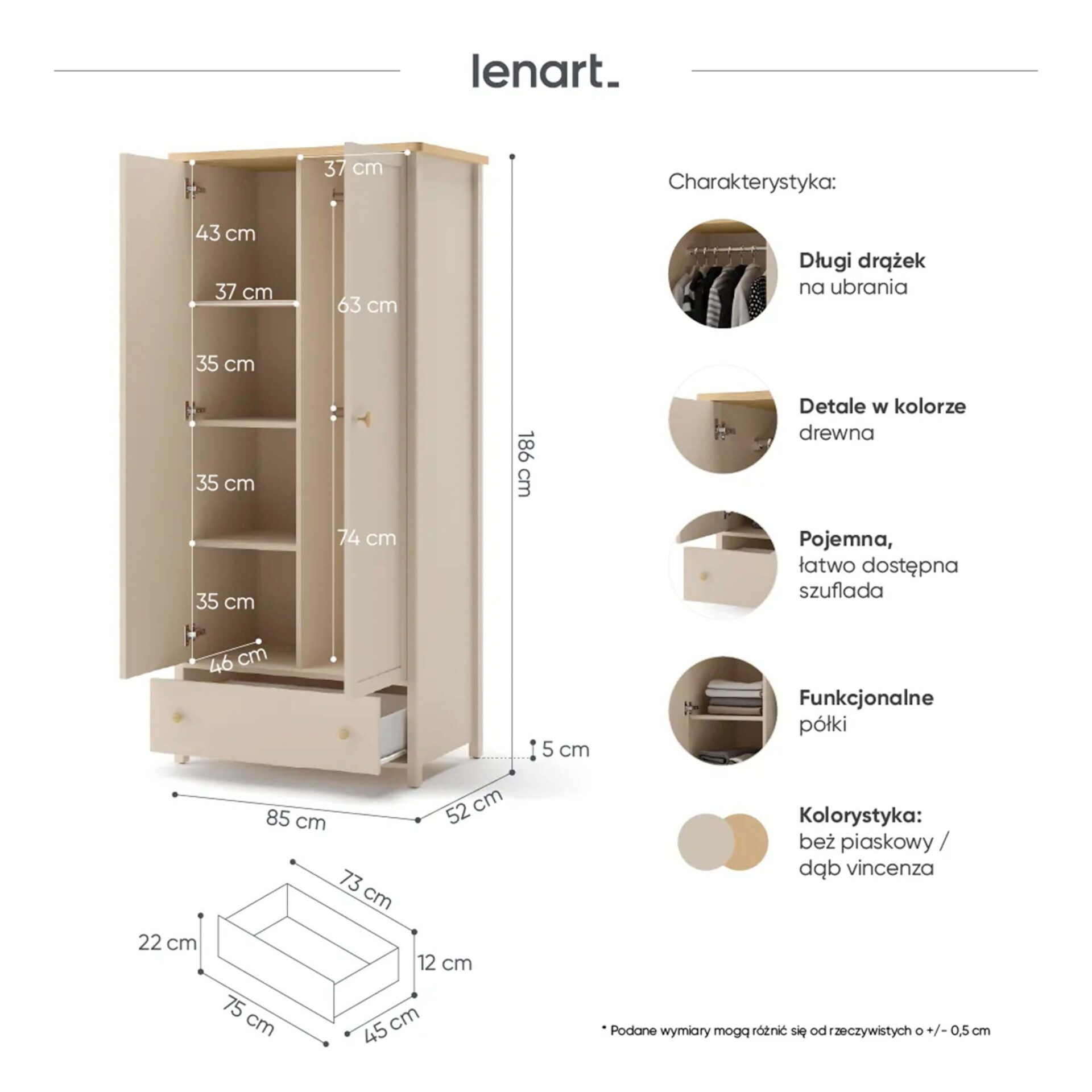 Color: Sand Beige / Bleached Vincenza Oak