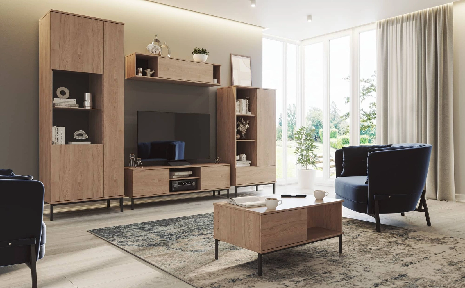 This bookcase from the Tutti collection is a delightful combination of geometric shapes and warm colors. The smooth, handleless finish of the fronts makes the bookcase’s composition cohesive, minimalistic. Slender metal legs add lightness while creating an interesting contrast to the bookcase’s massive form. The furniture from the Tutti collection is perfect for living rooms, bedrooms, and even hallways, adding elegance and modern style to the space.